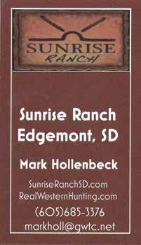 Mark Hollenbeck Sunrise Ranch 277772 Elbow Canyon Road Edgemont, SD 57735 605-685-3376 markholl@gwtc.net