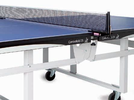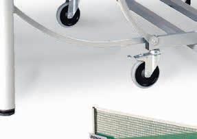 Agréée ITTF et FFTT. Chaque moitié de table est montée de 2 roulettes en caoutchouc pour le transport en position verticale. Livrable en vert ou bleu.