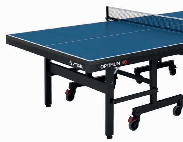L’Optimum 30 est la première table équipée d’un plateau de 30 mm d’épaisseur. Ainsi, l’uniformité et la régularité du rebond de la balle sont exceptionnelles. La surface a été traitée à plusieurs reprises et recouverte d’un vernis spécial pour donner juste la quantité de brillance adéquate et le coe cient de friction idéale. Le rebond est parfait même sur les balles à fortes rotations des joueurs de haut niveau. Plateau de 30 mm. Norme Européenne : EN 14468-1. Classe : A. Conditionnement en doubles cartons. Poids : 141 kg. Dimensions de rangement : l = 152,5 cm x P = 66,5 cm x H = 155 cm. Frais de transport inclus.