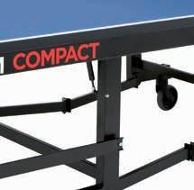 Adaptée au tennis handisport grâce à son espacement entre le bord de la table et les empiètements. Table Super-Comptact, peut être ouverte par une seule personne. Ouverture simultanée des deux côtés. Poids de la surface neutralisée grâce à des cylindres sous pression remplis de gaz. Empiètements externes réglables à hauteur de 30 mm env. Les surfaces et la construction obéissent à la classe A de la norme européenne 14468-1. Livrable en vert ou bleu. Agréée ITTF.