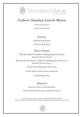 A discretionary service charge of 12.5% will be added to all bills Should you have any dietary requirements or allergies, please speak with your server