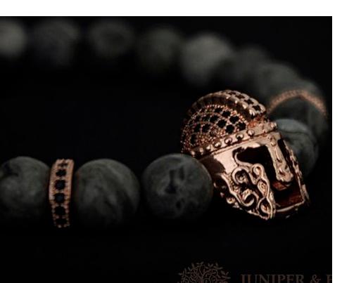 Adiciona Estilo y Caracter a tu Guardaropa con este magnifico accesorio. La serie de Brazaletes “Spartan” te haran lucir y resaltar el guerrero que llevas dentro. Conformada por granadas hechas a partir de Roca Natural, Ahumada y pulida bajo los mas altos estandares de calidad.