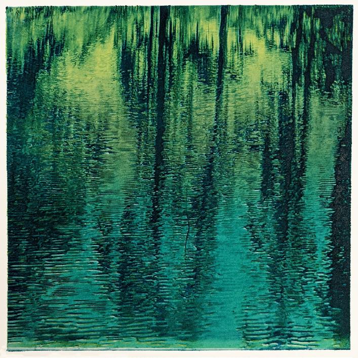 Woodblock print, metallic ink on paper
