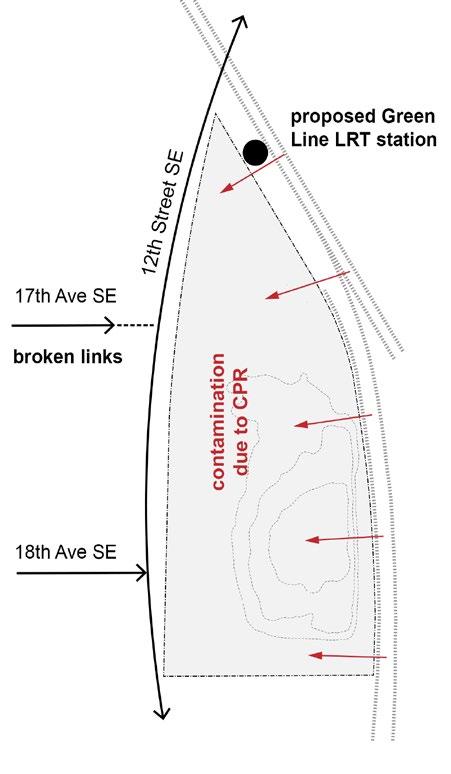 Ramsay and Inglewood are an eclectic neighbourhoods situated in the south-eastern part of the Canadian city of Calgary, Alberta. On one hand, they boast rich architectural history, a strong artisan community, and house some of the best breweries in Calgary. On the other hand, the neighbourhoods are heavily fragmented by the Central Pacific Railway Line (CPR), at the centre, which has pushed all the significant green spaces to the periphery, along the Bow and the Elbow River. With the upcoming Green Line Light Rail Transit (LRT), the neighbourhood will experience an unprecedented growth and development, which could impact the ecological footprint, if not addressed well in advance.