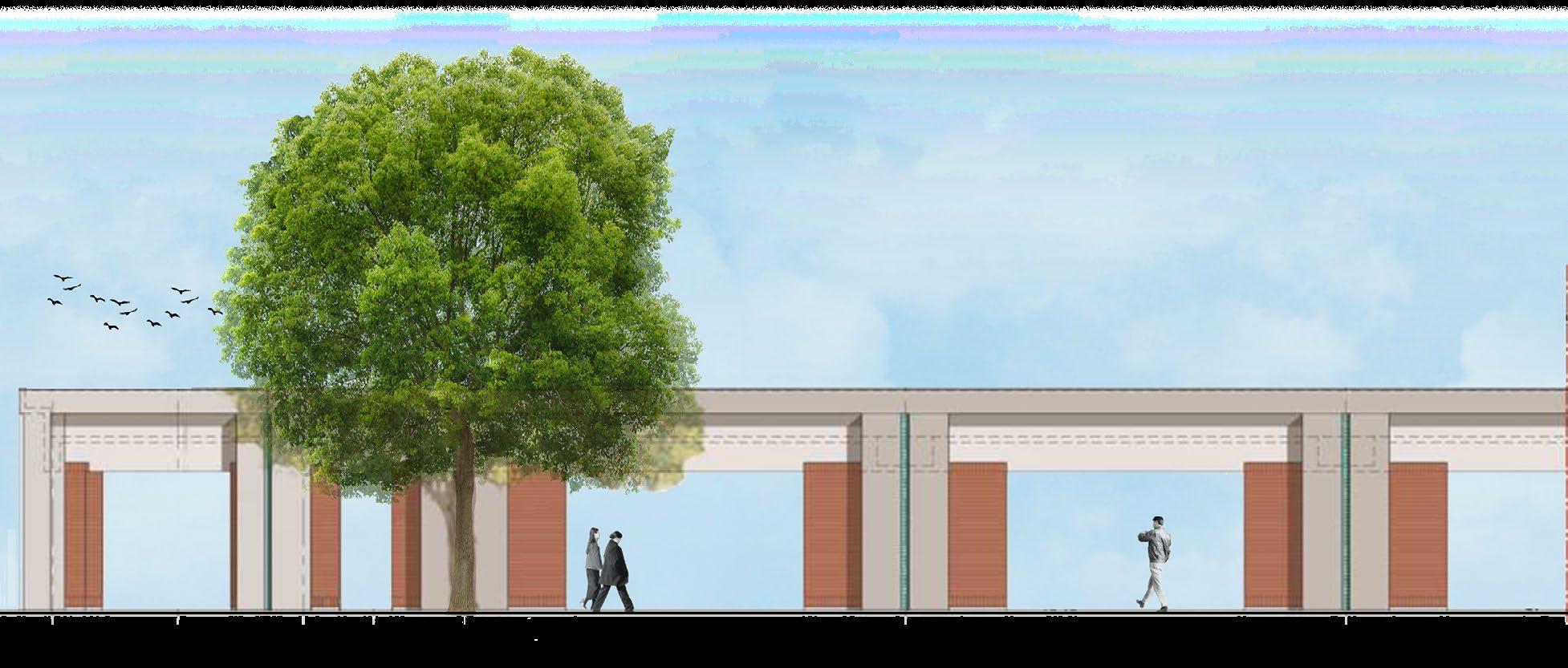 A conscious effort has been taken to maintain the axis for arcade and landscape feature for a visual effect.