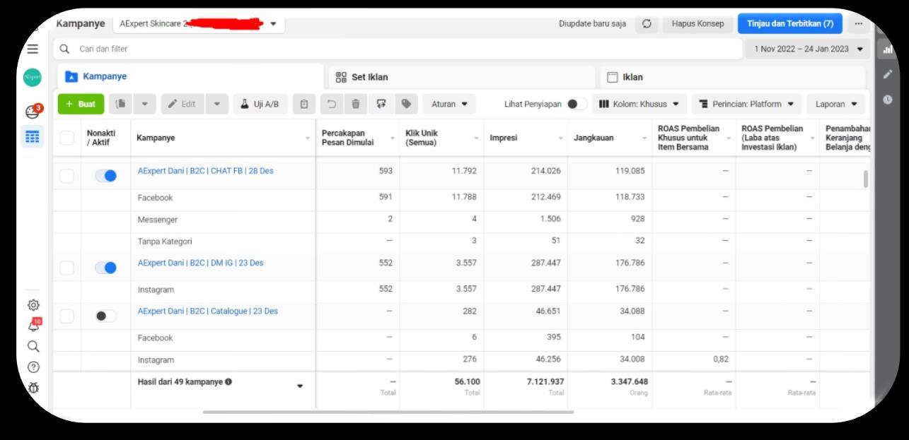 Facebook& InstagramAds(CollaborativeAds Shopee) SUCCESSFULLY GENERATE Rp105.21Million SALESON SHOPEE WITHIN 1YEARS FOR THE DETAILOF PRESENTATION NEXTSLIDE Dashboard DigitalMarketing Facebook & Instagram Ads (Conversion) DIGITAL MARKETING