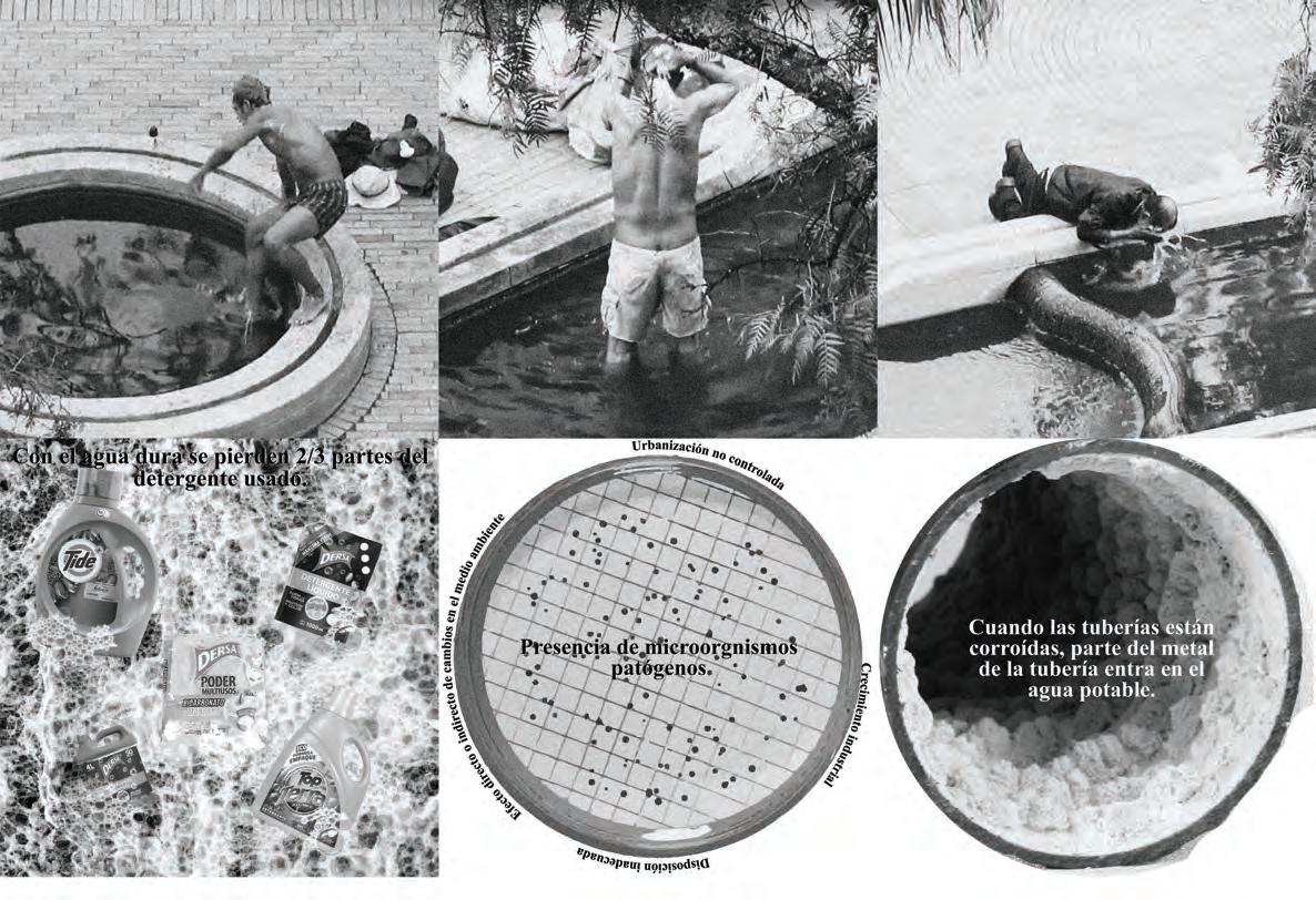 Este proyecto busca generar un diálogo sobre la relación actual del cuerpo y el agua, generar consciencia del estado del agua que se encuentra en el espacio público y su privat ización, como se ven afectadas las personas que tienen necesi dades cotidianas que no tienen acceso al agua y deben hacer uso del agua que está en el espacio público
