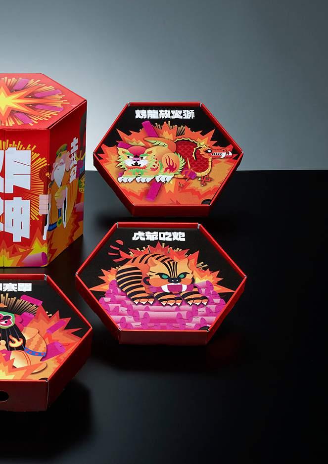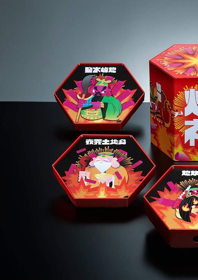 a hexagonal firecracker box structure as the main element, the project showcases layers of firecracker culture. Additionally, temple introductions, event information, and highlights are incorporated into a well-designed magazine, facilitating the organization of event summaries and images to enhance religious knowledge and spark interest in traditional temple fairs.