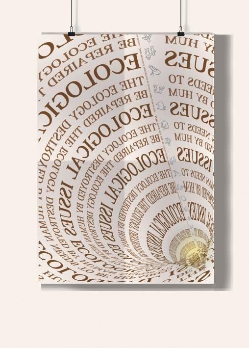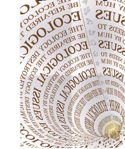 圖2 ECOLOGICAL ISSUES和THE ECOLOGY DESTROYED BY HUMAN NEEDS TO BE REPAIRED來表達 生態嚴重性,動物排列著往著稱為希望的光前進,希望能離開被人類迫害的環境。