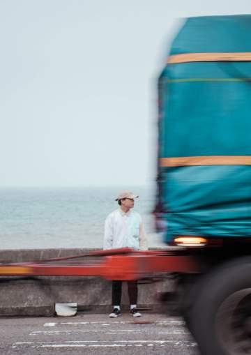 圖1 彷彿與周圍世界隔離開來,他的身影在這城市的喧囂與車流中顯得微不足道,但同時又 格外引人注目。