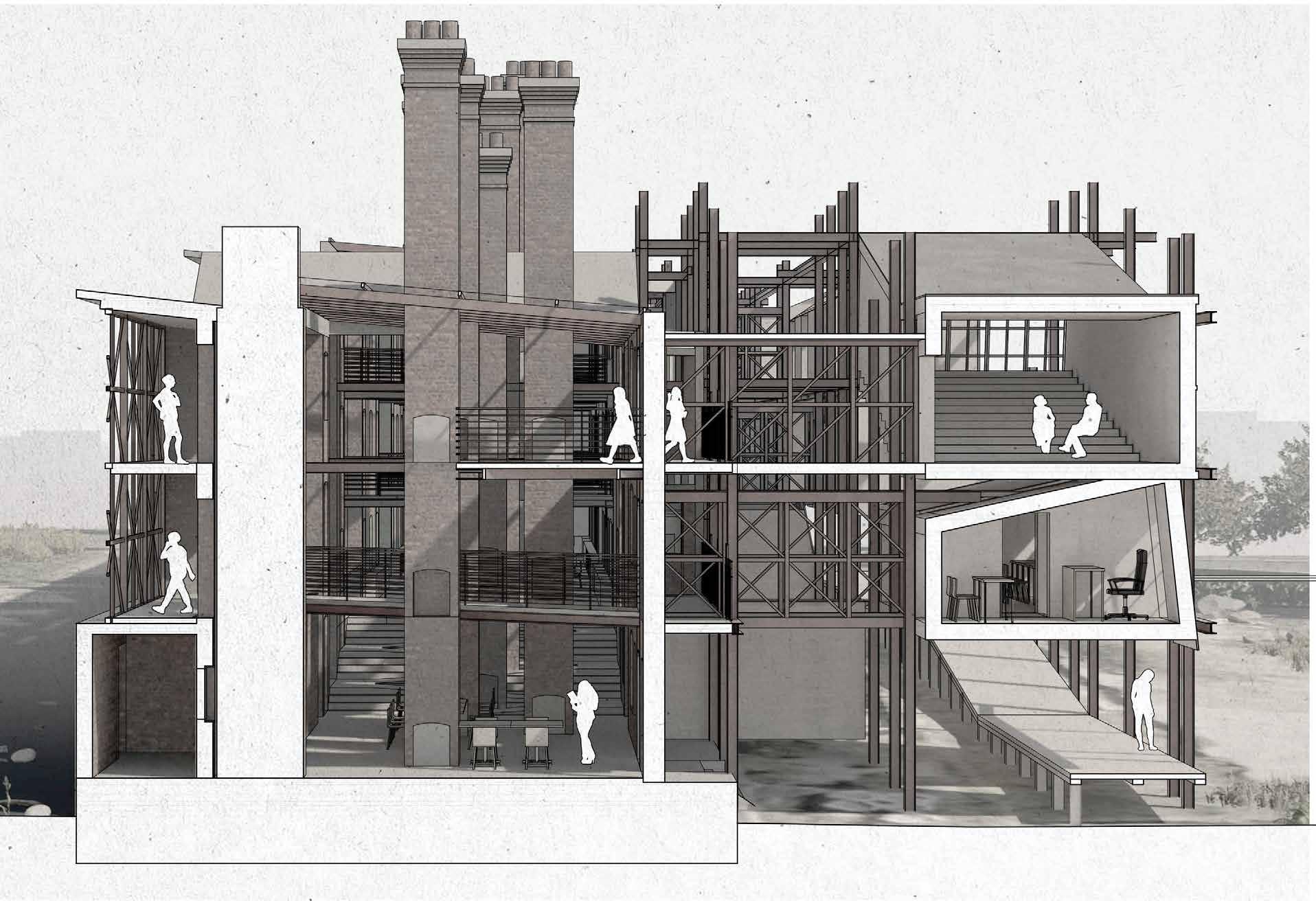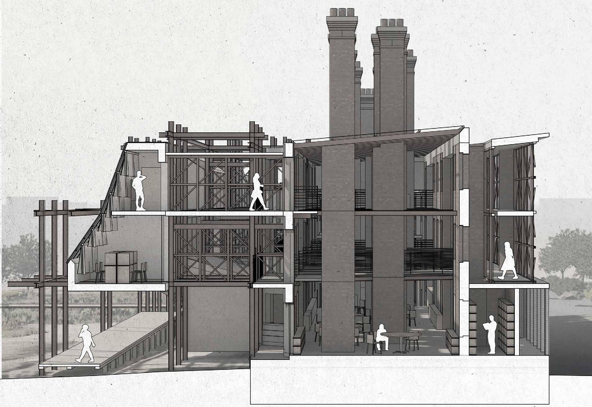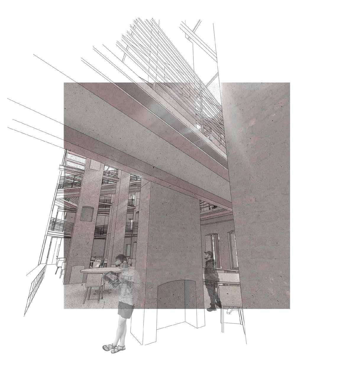 The objective of this project is to design a library to serve the community of Liverpool, specifically the Vauxhall area. My project explores the relationship between place and memory, focusing on how that interplay deteriorates as the built environment decays. This is epitomised in the choice to use a site with an abandoned building. The intervention largely manifests as a system of internal walkways and facade retention which permeate through existing openings on the facade, allowing the occupants to coexist with the original facade, where their memories of the building tend to reside.
