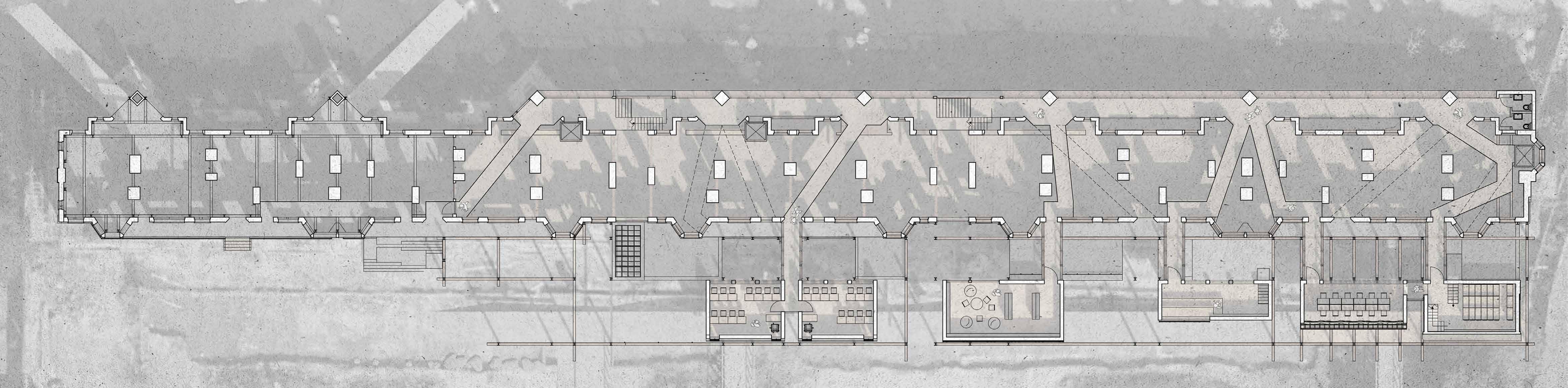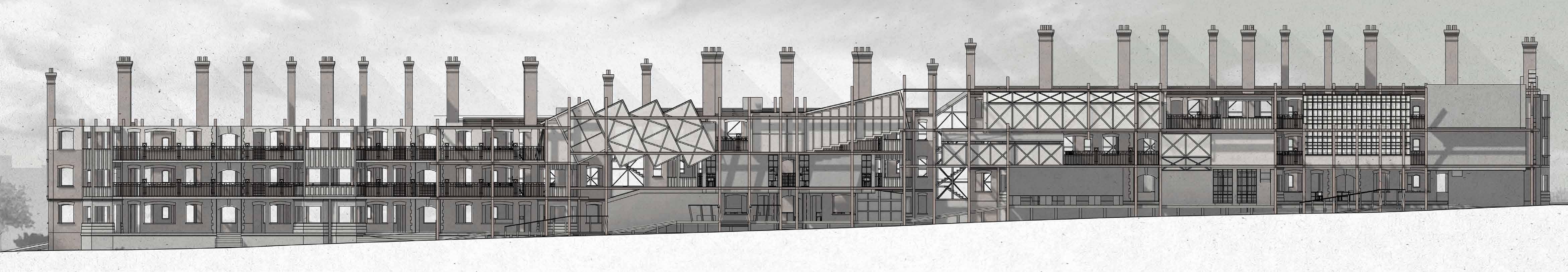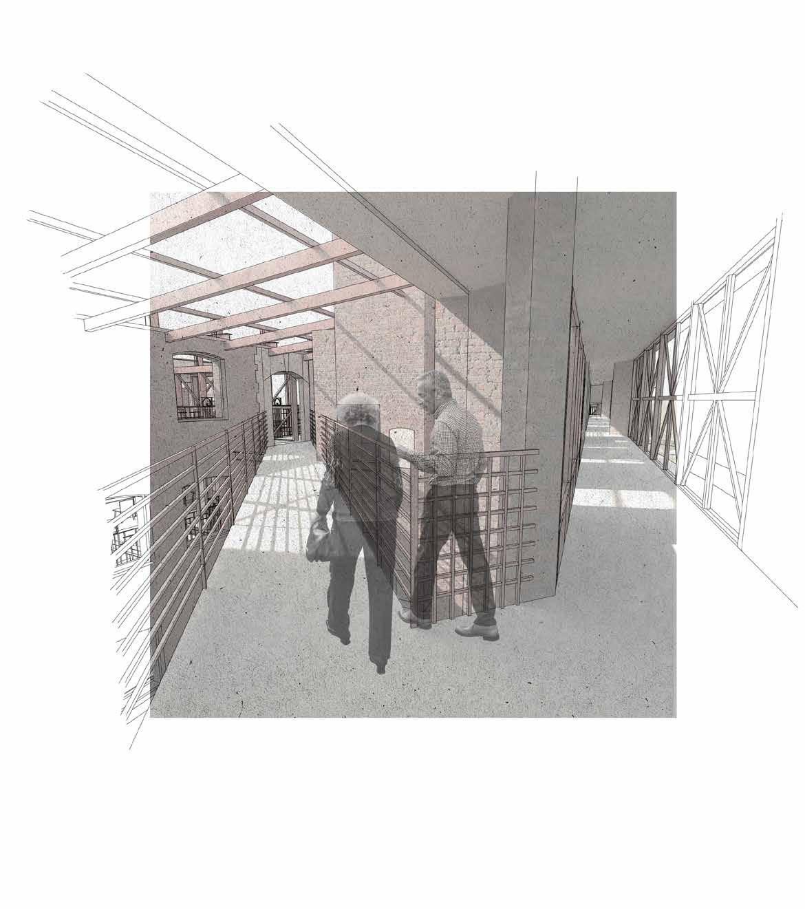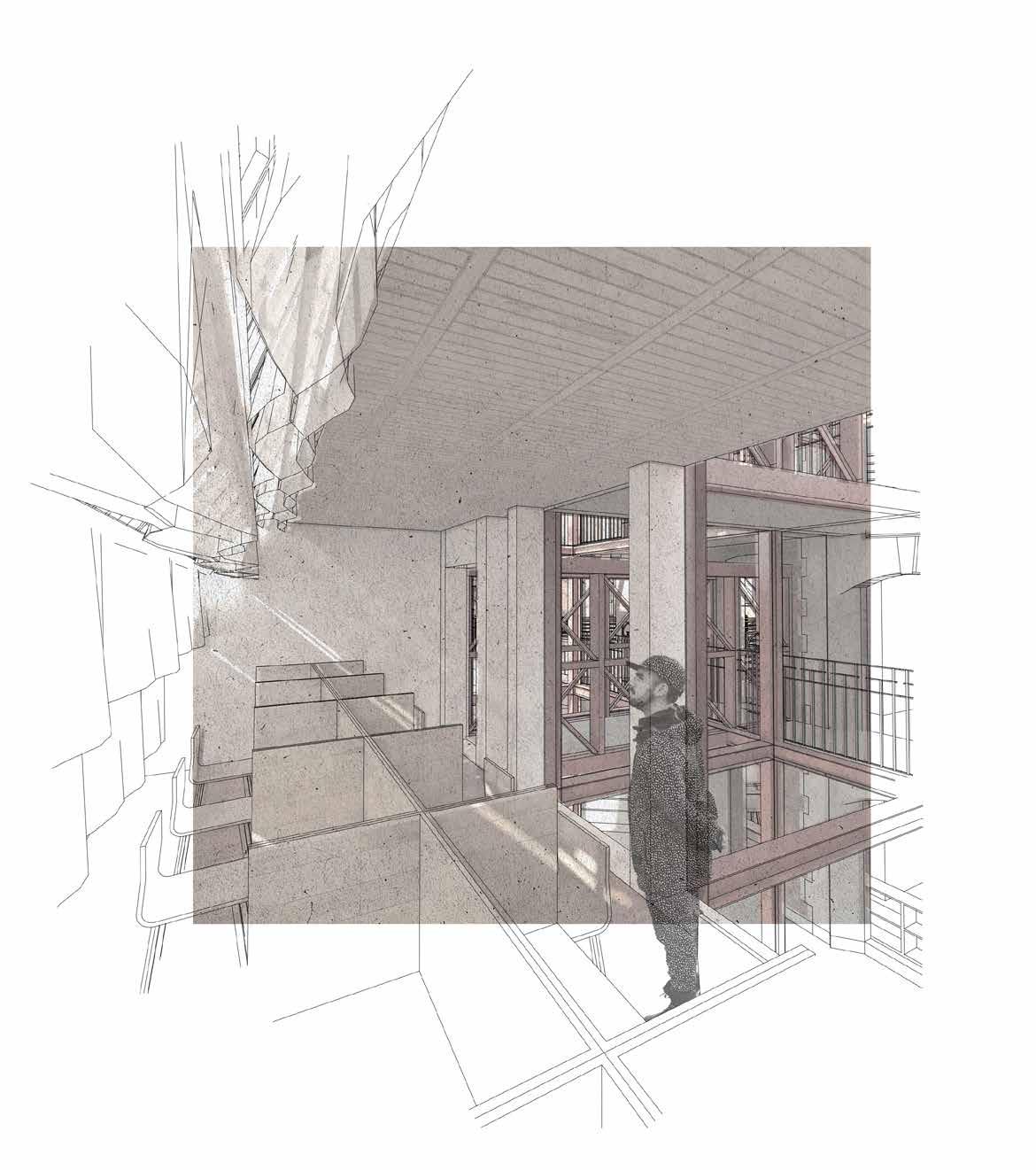 The objective of this project is to design a library to serve the community of Liverpool, specifically the Vauxhall area. My project explores the relationship between place and memory, focusing on how that interplay deteriorates as the built environment decays. This is epitomised in the choice to use a site with an abandoned building. The intervention largely manifests as a system of internal walkways and facade retention which permeate through existing openings on the facade, allowing the occupants to coexist with the original facade, where their memories of the building tend to reside.