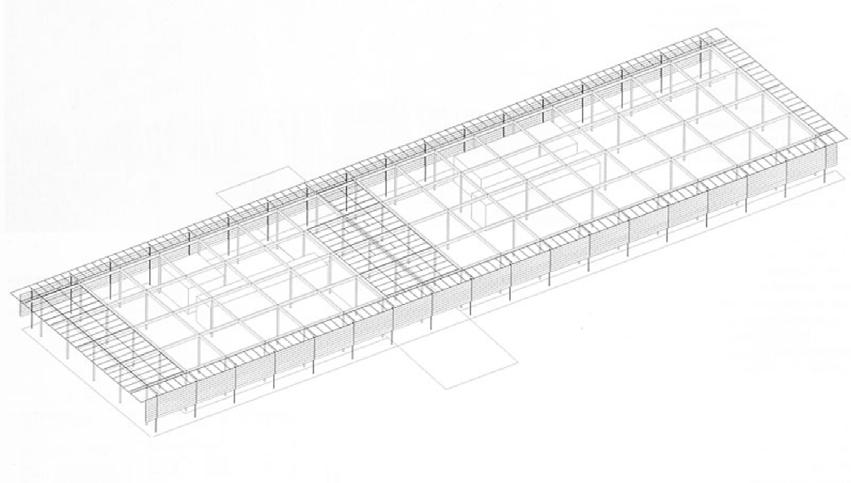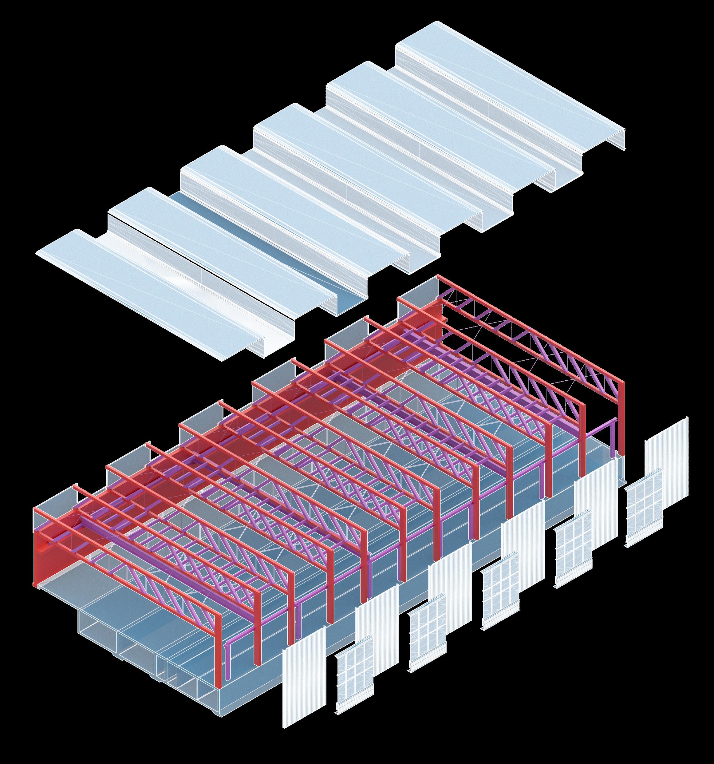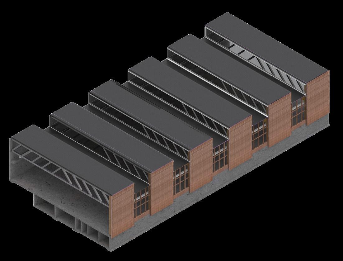 The case study presented is a factory joining hall, completed in 1991, This largescale warehouse sports an open assembly floorplan abundant in natural lighting for industrial work and is fitted with two largescale, single girder cranes supported by concrete props. This exercise affords comprehensive understanding of structural integrity and systems within a building.