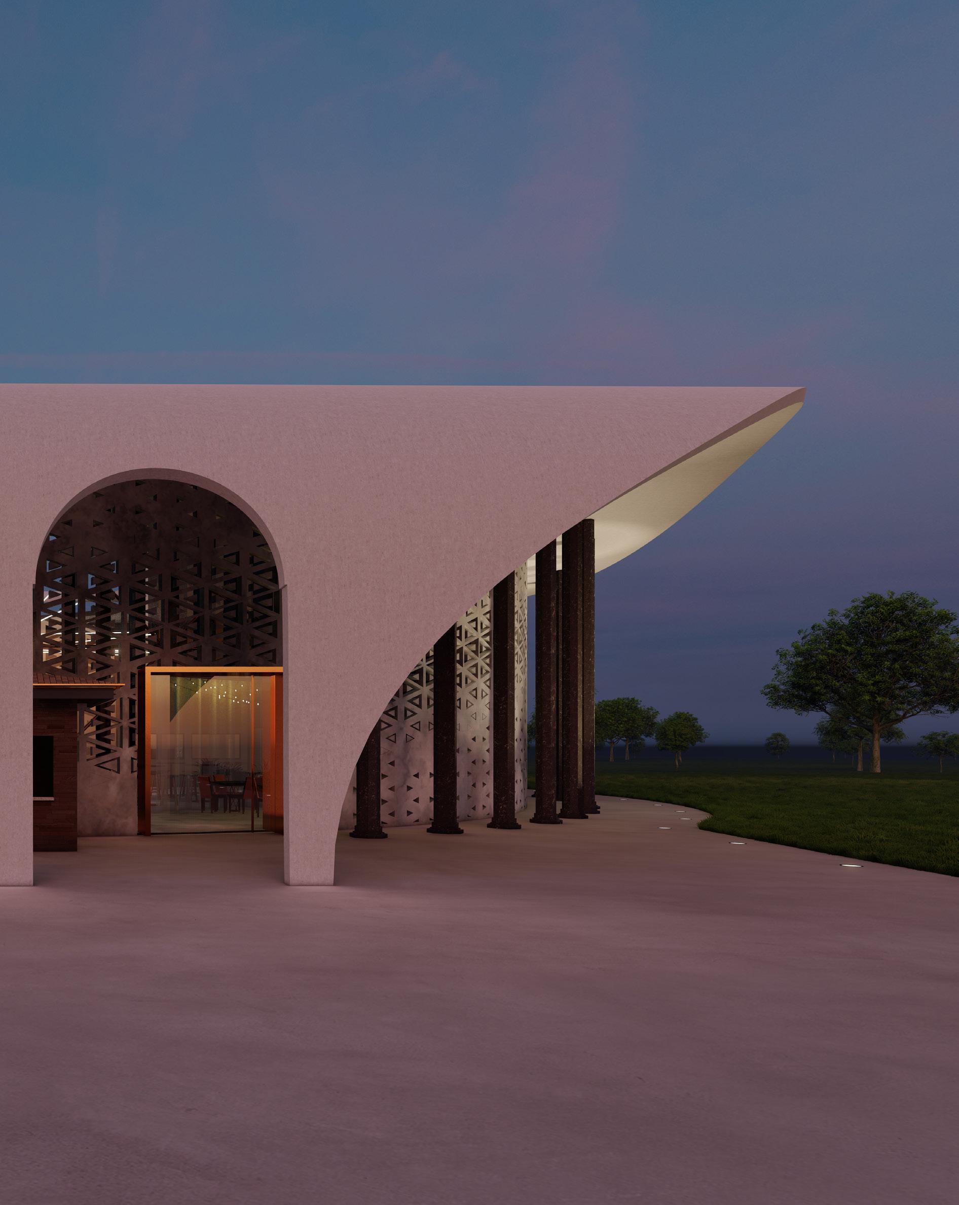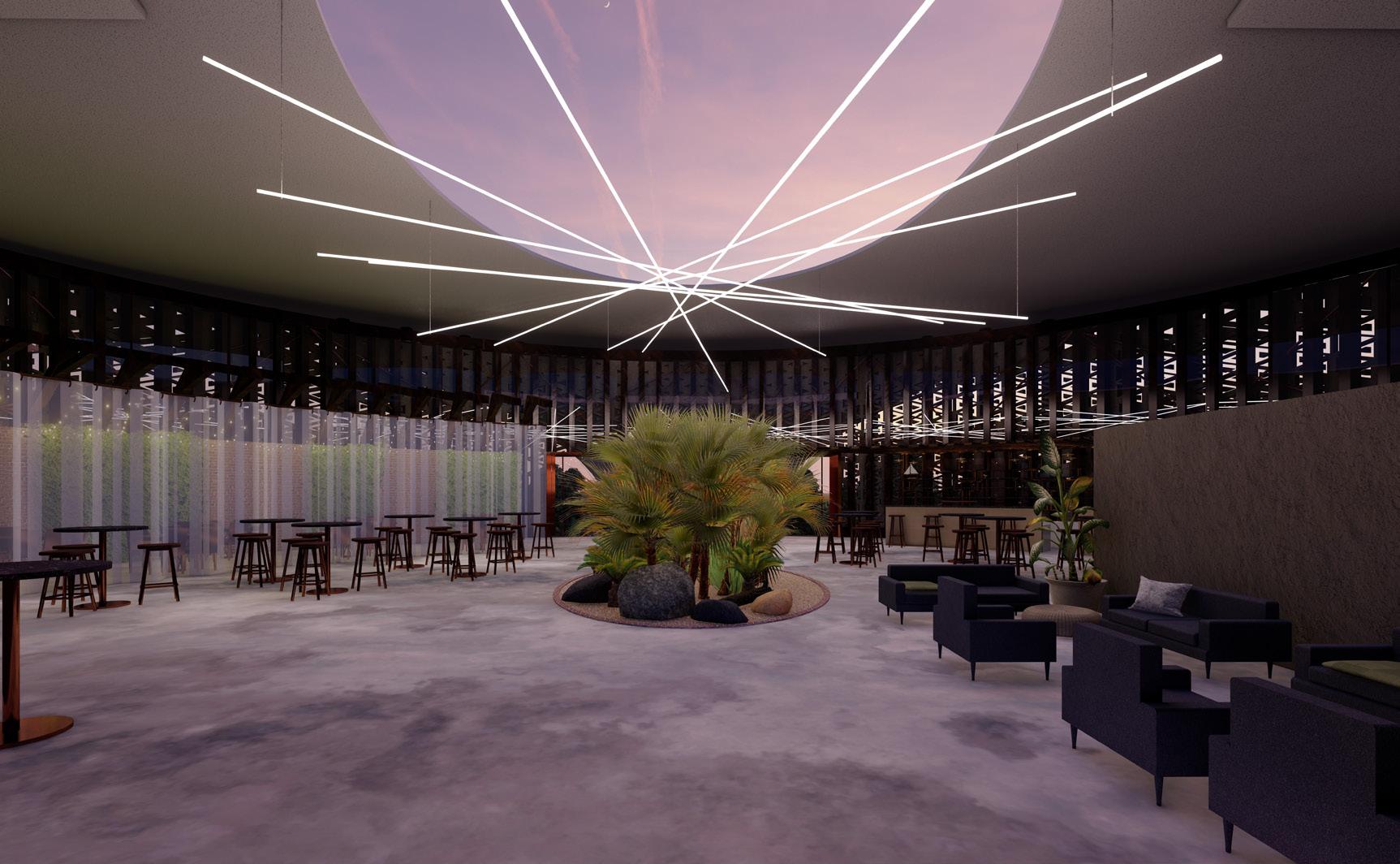 The parametric open façade allows for plenty of natural light and between the picturesque external environments and the architectural
