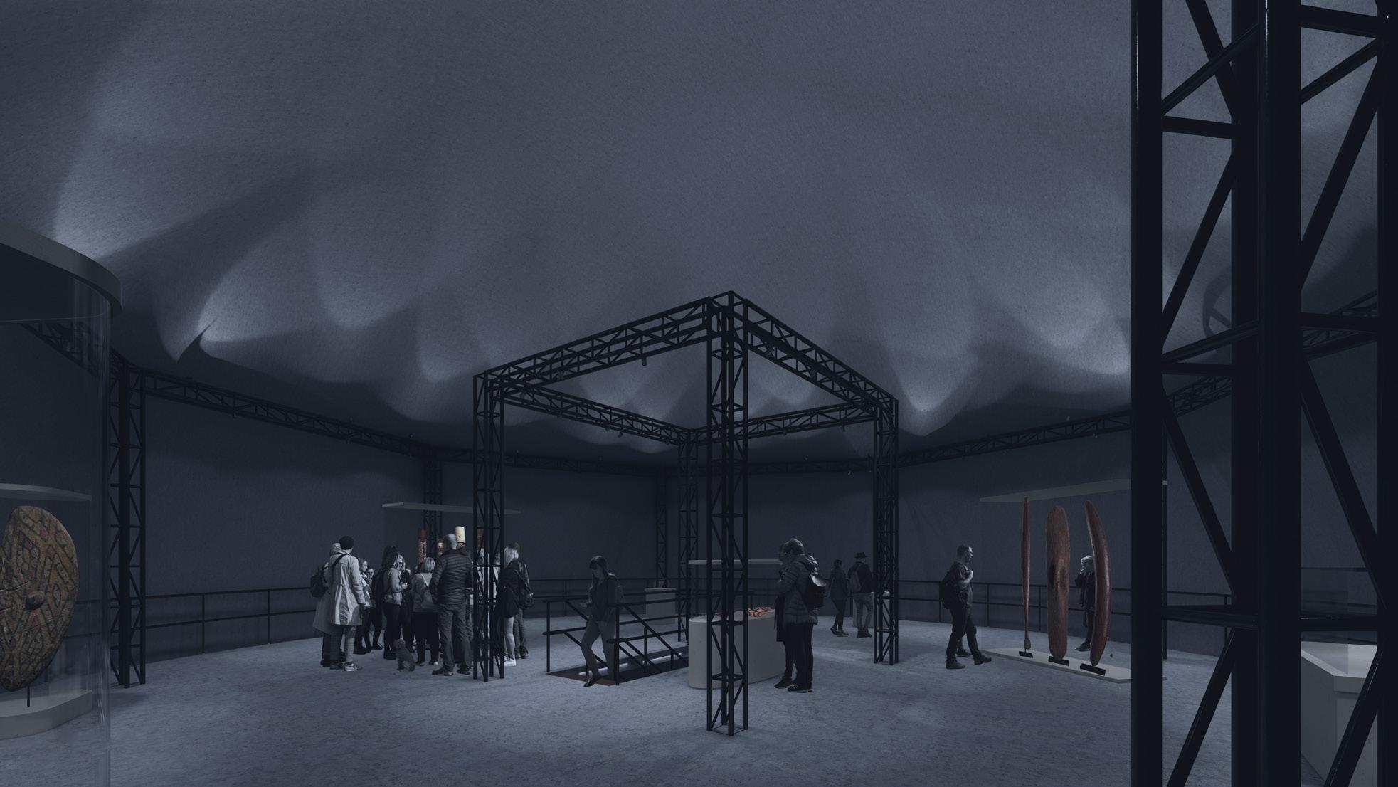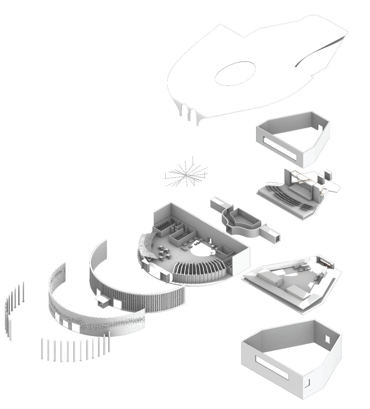 Beginning stages of geometric form finding was founded on precedents such as whispering galleries that produce aural phenomena, inspiring the use of an emerging spherical structure
