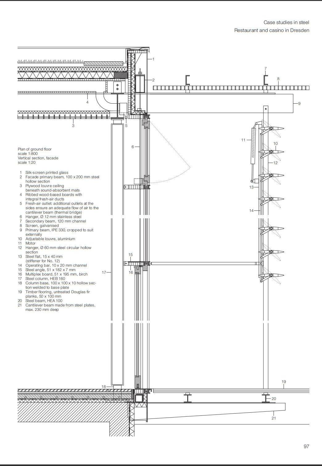 This study of steel in complex architecture examines the case study of this Dresden casino and bar with its dining halls and club rooms. The single-story structure maintains a breath of openness with its transparent outer shell being open on all sides to the surrounding park like setting.