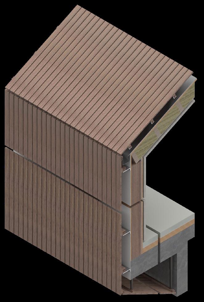 171 mm ventilation substructure consisting of: 18mm ribbed wood base-board topping 125mm cavity with intergrel ducting 18mm ribbed wood base-board bottom 50 x 10 mm timber louvre ceiling