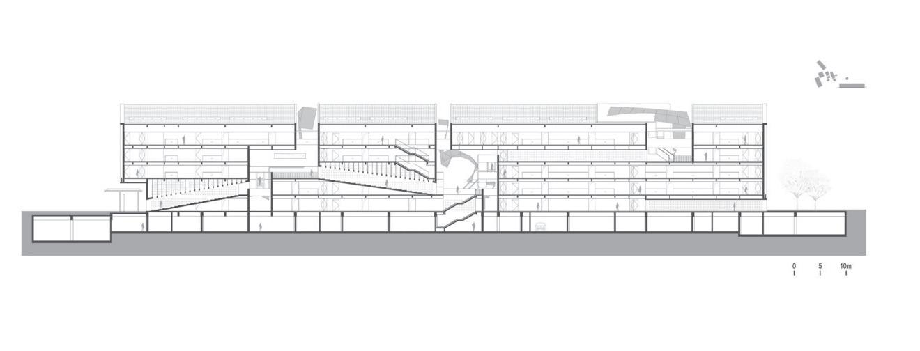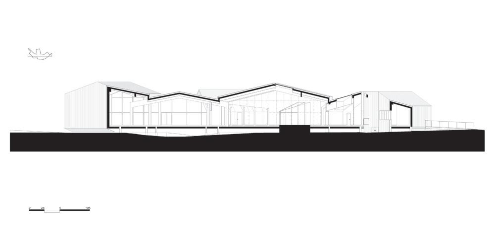 gardens where they are greeted by staff at the afforded access to the open space foyer and atrium. and cross breezing to infiltrate the structure,blurring the lines architectural fortitude this large stone-clad space provides.