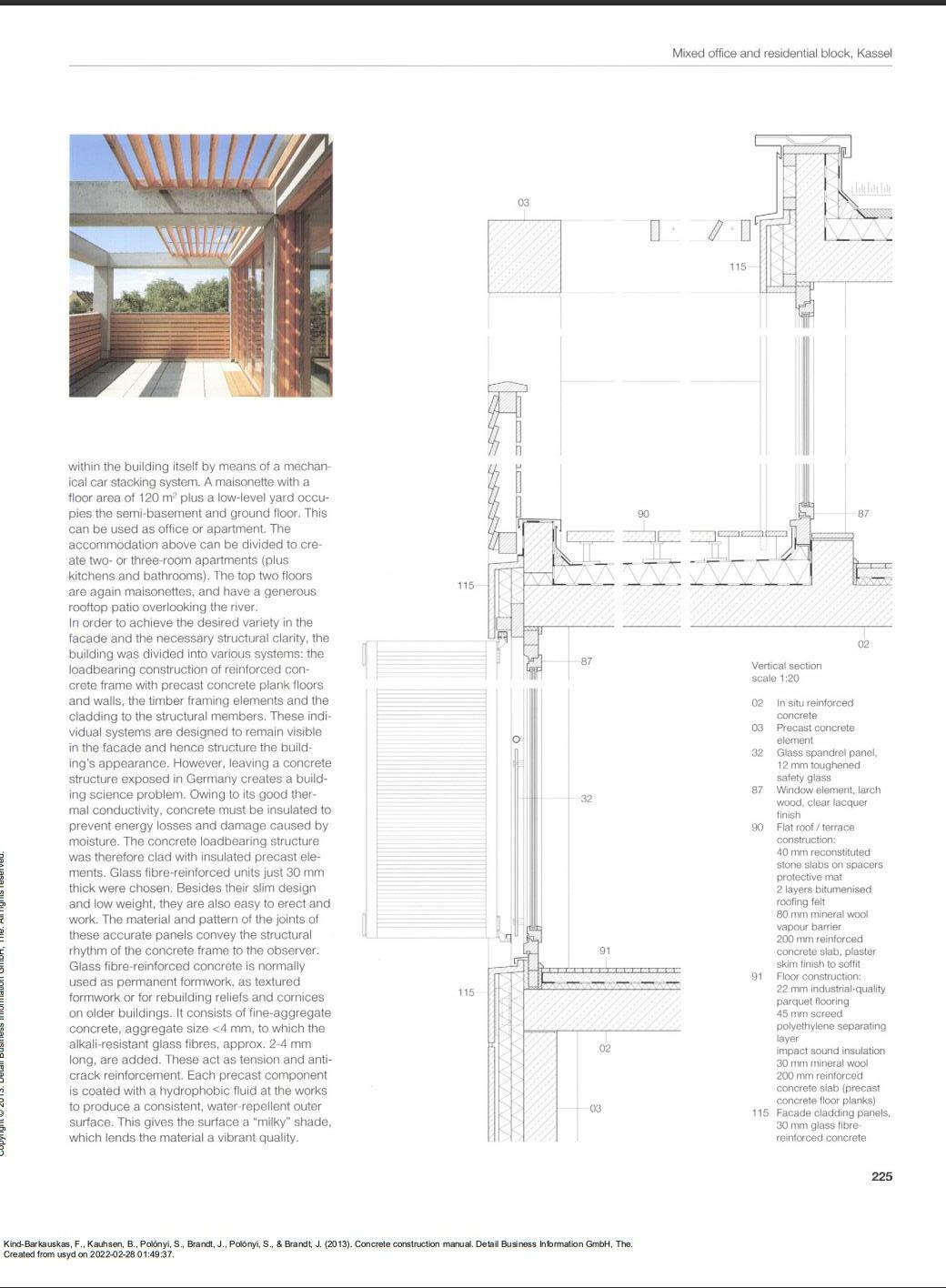 Tectonic of reinforced concrete studies architectural forms of Case Study 2’s 1999 office and residentail block in Kassel, Germany.