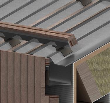 Trapezoidal metal sheet underlay Detail Render with fixings and gutter flashing