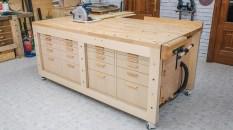 Mesa de madera y banco de trabajo con cajones para talleres