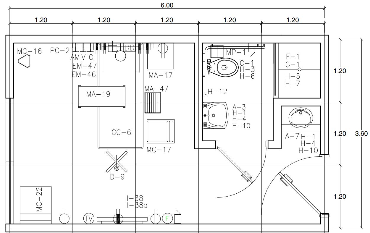 Circulación de la sala de hospitalización a es de 1.20 m.