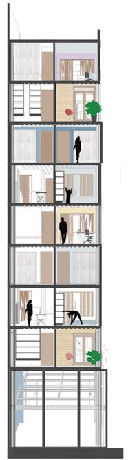 Influenciando a que las personas se acerquen y convivan en huertas urbanas publicas ,el “reverdecimiento” del area aledaña y los espacios de ocio privados , generando vivienda flexible sencilla y duplex a las necesidades de los diferentes grupos poblaconales estudiados,compactando necesidades basicas en primera planta, aportando a la sostenibilidad recoleccion de aguas lluvias y fachadas verdes