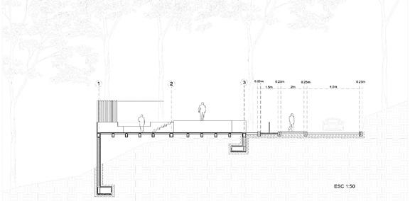 The urban proposal articulates 2 nearby projects by biking trails, an urban space, complementary and directly related to the building, designed for all people access, offering space for learning and awareness. It has a staggered design for a greater non-invasive relationship with the sloped land. The project is based on the orthogonality proposed by the avant-garde painter Piet Mondrian and the golden radio.