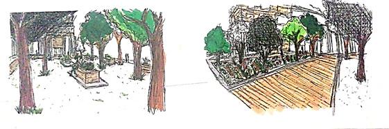 C2 Zonas de bioretención: Usadas en las jardineras, reteniendo el agua de su ubicación