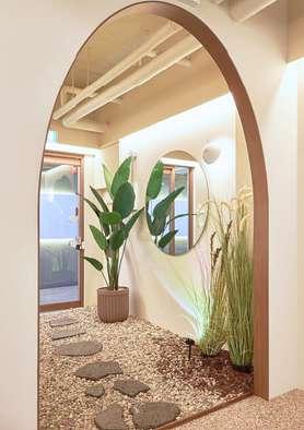 Both stores will have a minimalist and natural aesthetic, we want our clients to feel calm and in contact with nature when they enter the stores To achieve this, the premises will be light and neutral colors such as beige and different shades of brown. There will be natural elements such as palm trees and large stones that will be used as tables and shelves The accessories will be displayed on seashell-shaped jewelry boxes that will be placed on these large stones.