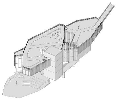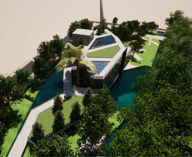 The general concept that is handled is the almost mimicry of the building with the context, this is achieved both with green roofs, as well as with the bodies of water mentioned above.
