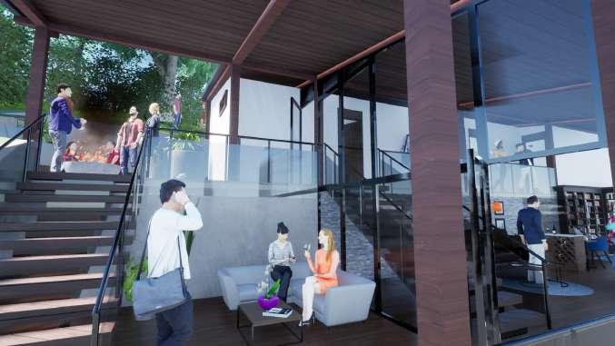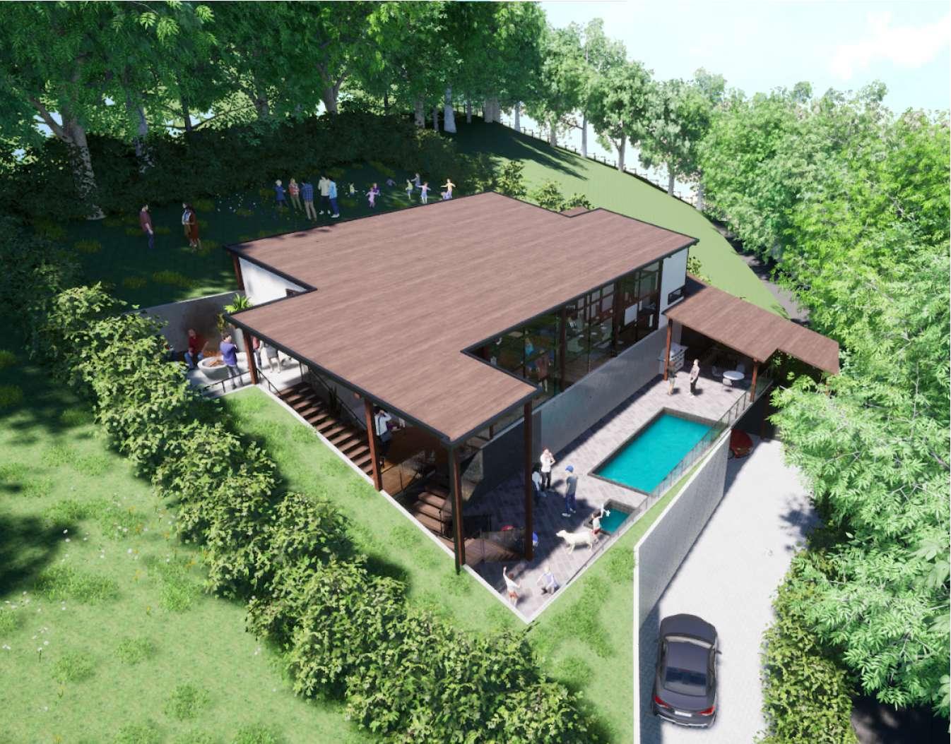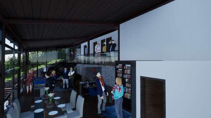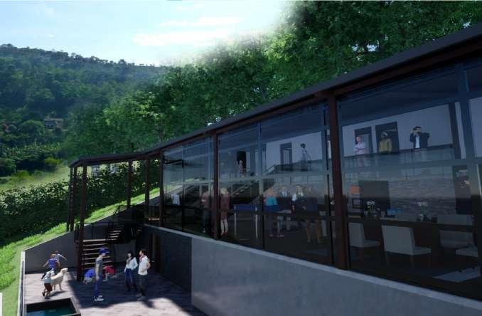 This project has a number of areas designed specifically for recreational purposes; among them we have a games area, a relaxation area, a campfire area, a jaccuzzi and a pool, as well as a bbq, besides those there also is a library/studio accompanied by the amazing view of the mountains.