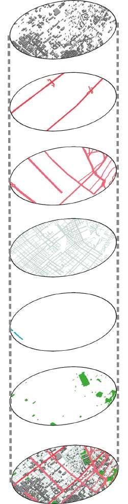 We can also se that in the area there aren’t many green spaces. This helps us to direct the design of the project with an enfasis in creating green places.