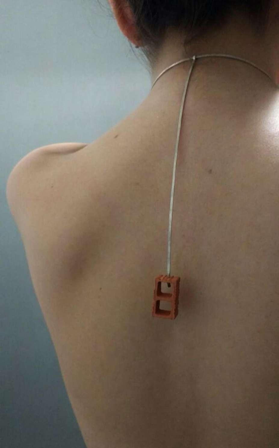 Collar y broches, Plata 925, latón y fragmentos de casa encontrados