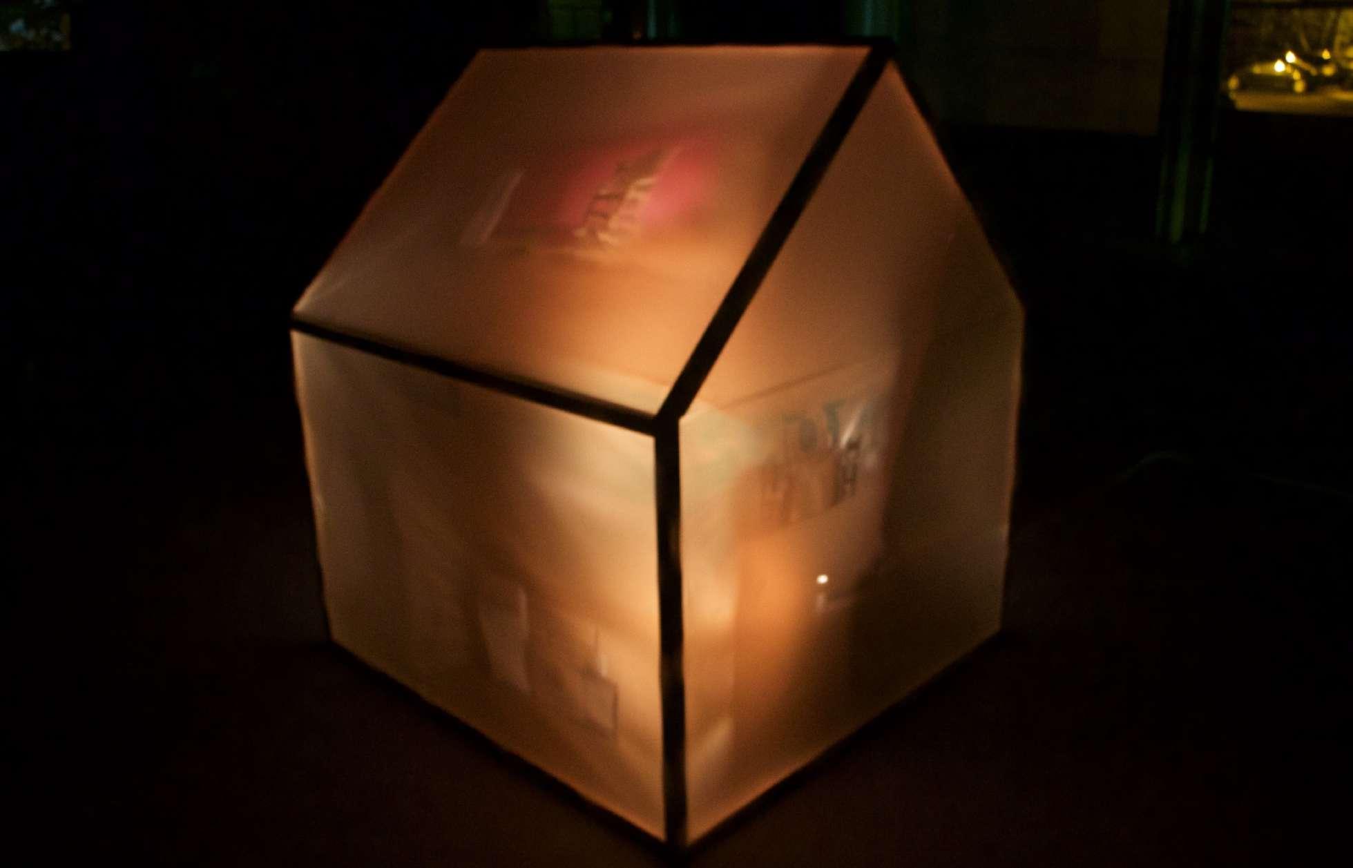 Escultura con linternas mágicas en casa de papel