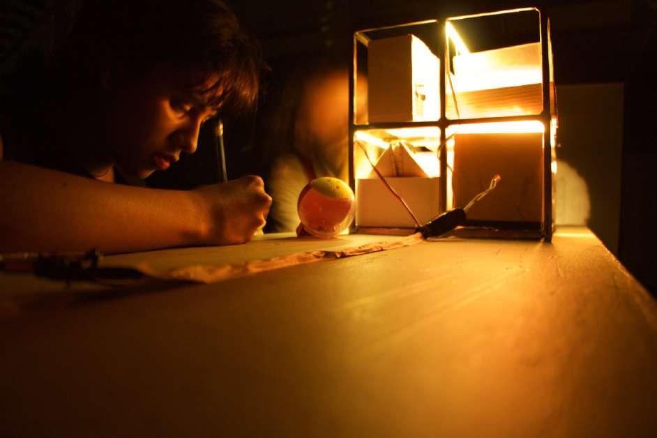 Ensamblaje de objetos con proyector artesanal