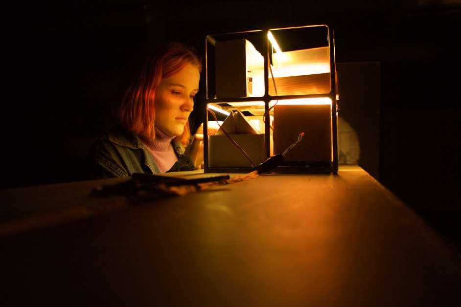 Escultura de papel y aluminio con linternas mágicas