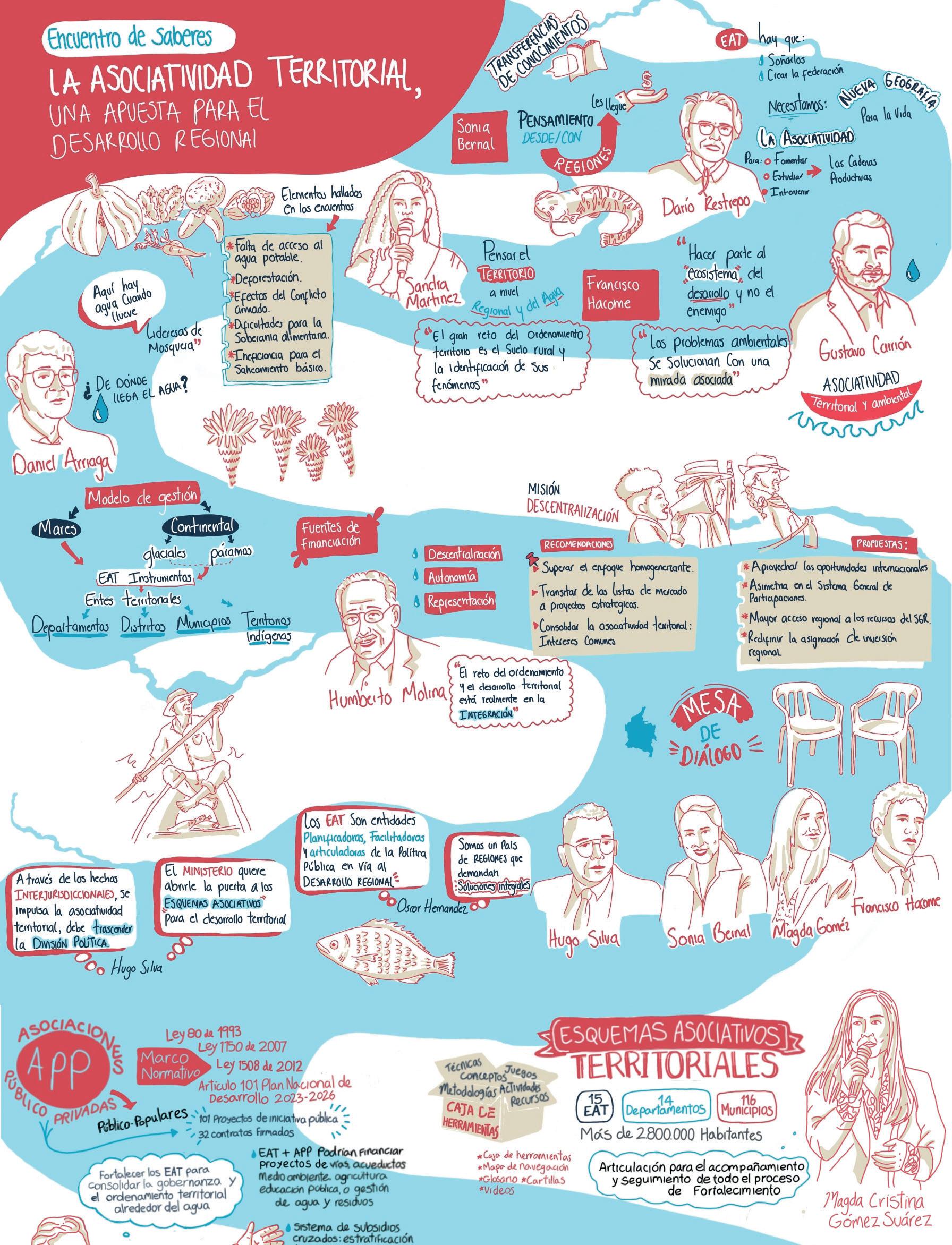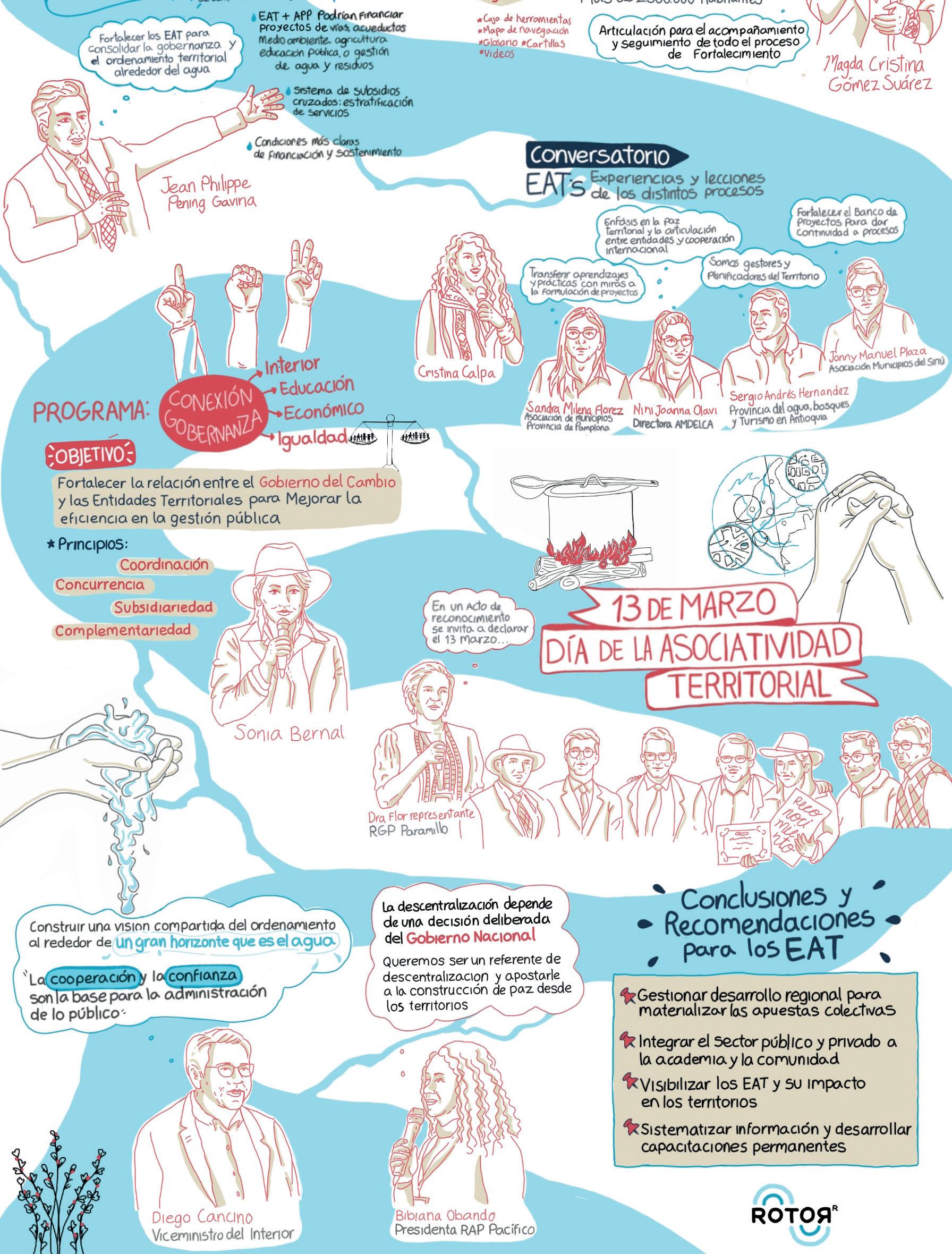 Diseño de material gráfico para el evento “La asociatividad territorial, una apuesta para el desarrollo regional”. Graphic recording durante el evento. Ilustración digital para completar la relatoría gráfica del encuentro.