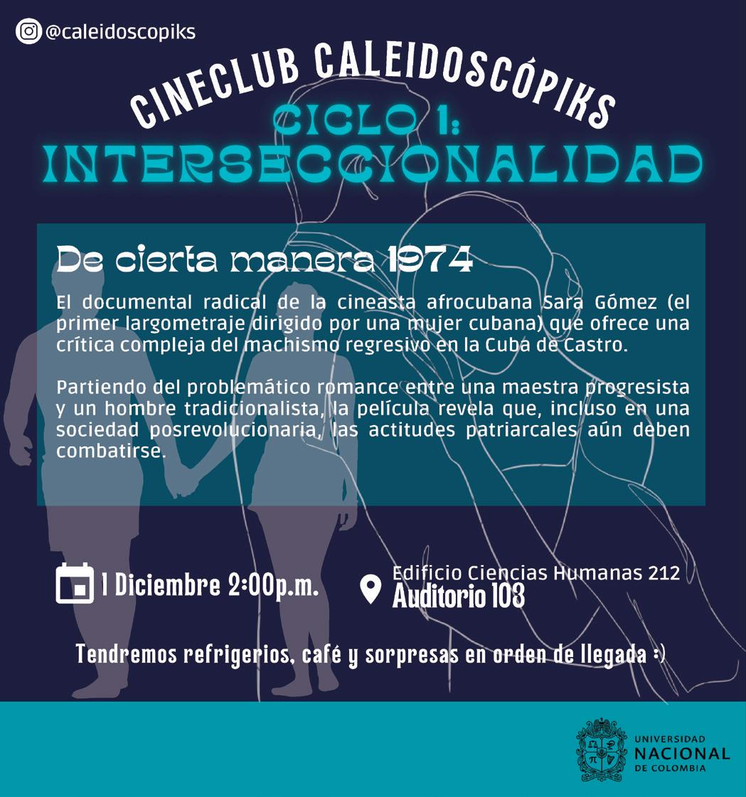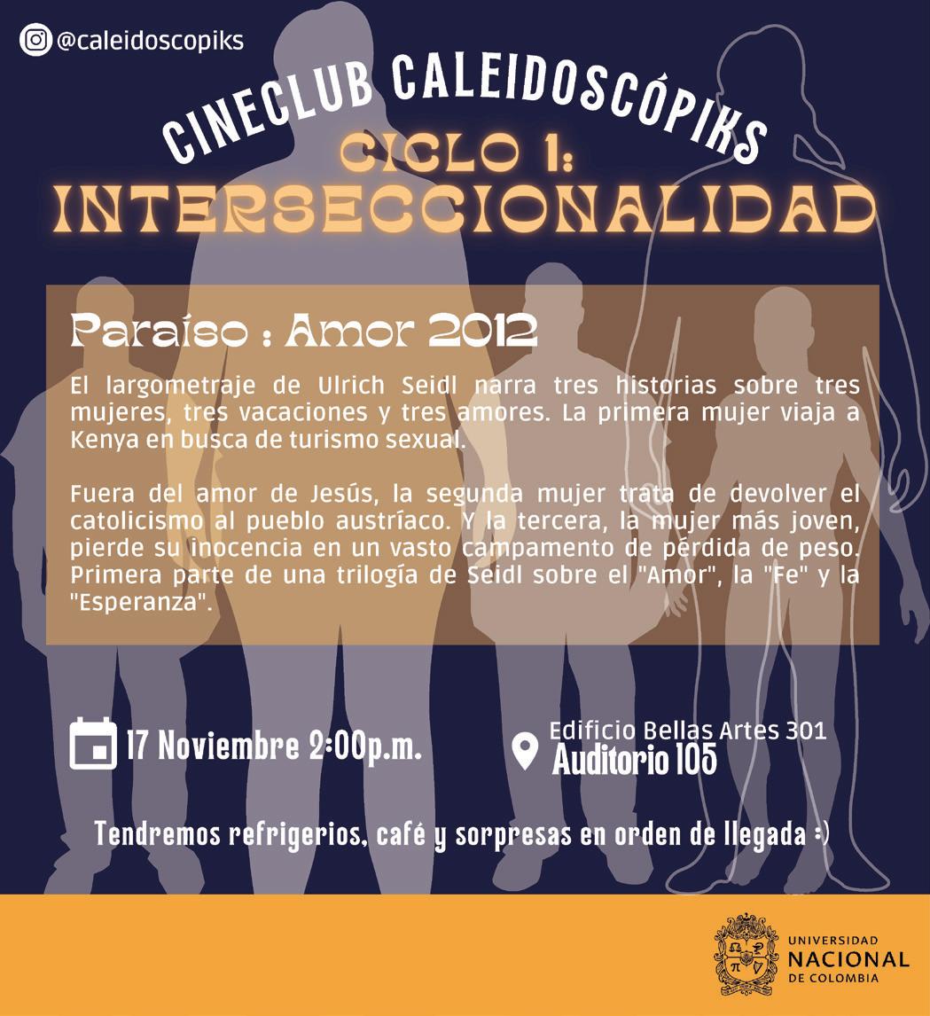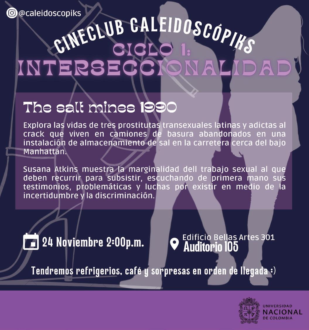 Cineclub universitario con perspectiva interseccional y de género patrocinado por la Secretaría de Sede de la Universidad Nacional de Colombia, sede Bogotá. Creado bajo el concepto de cineclub caleidoscopio que permite múltiples miradas y análisis sobre las producciones audiovisuales, enmarcado en el concepto de interseccionalidad.