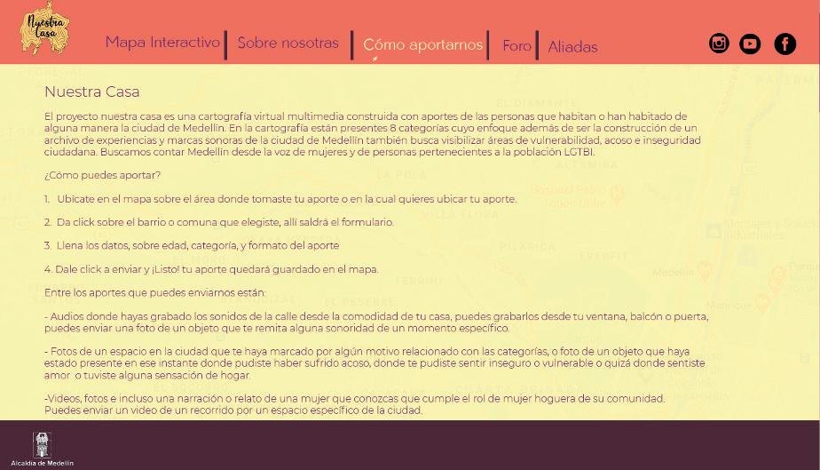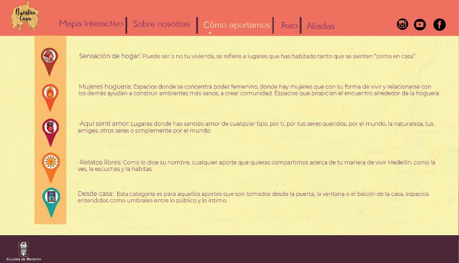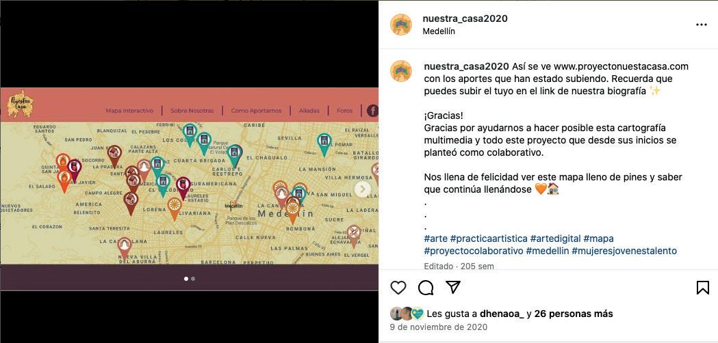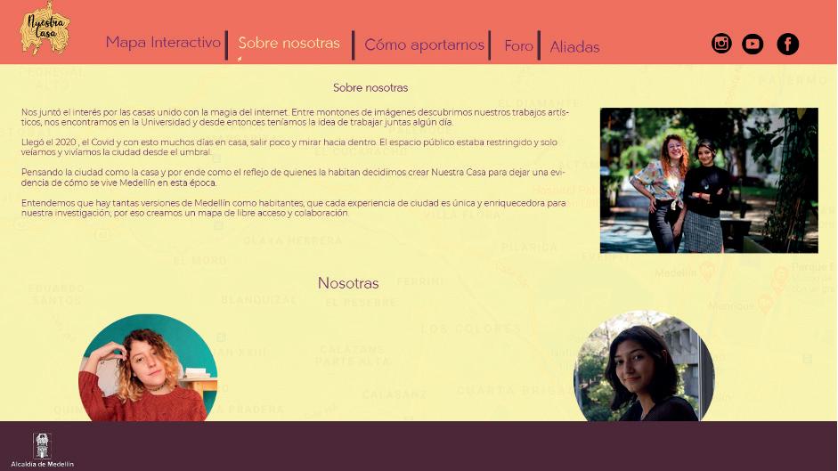 Nuestra Casa fue un proyecto transmedia realizado en 2020 gracias a que fuimos ganadoras del Concurso Mujeres Jóvenes Talento organizado por la Alcaldía de Medellín y la Secretaría de la Mujer. El proyecto constaba de una plataforma web en la que habitantes de la ciudad podían registrar todo tipo de experiencias previas o experimentadas durante la emergencia sanitaria por el covid19; amor, acoso, cuidado, calidez, seguidad, y relatos libres. Los registros podían ser textos, imágenes, audios o videos, y al finalizar el proyecto editamos un corto-collage-experimental con todos los aportes que recibimos.
