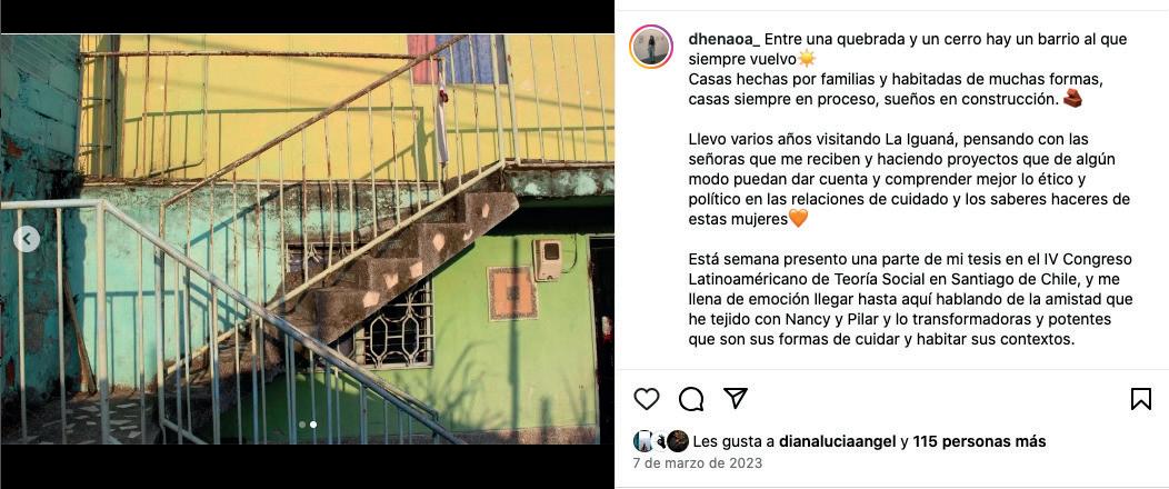 Investigo sobre cuidados, domesticidad y vida barrial con un enfoque interseccional, aquí comparto un poco del contenido que genero en mis redes personales y los temas que me importan y me conmueven. Me interesa la posiblidad de crear comunidades y transformar poco a poco la contemporaneidad moderna colonial que habitamos. Desde mis propias redes sociales procuro transmitir con sinceridad y transparencia aquello que observo con atención en la cotidianidad y el encuentro con otras personas.