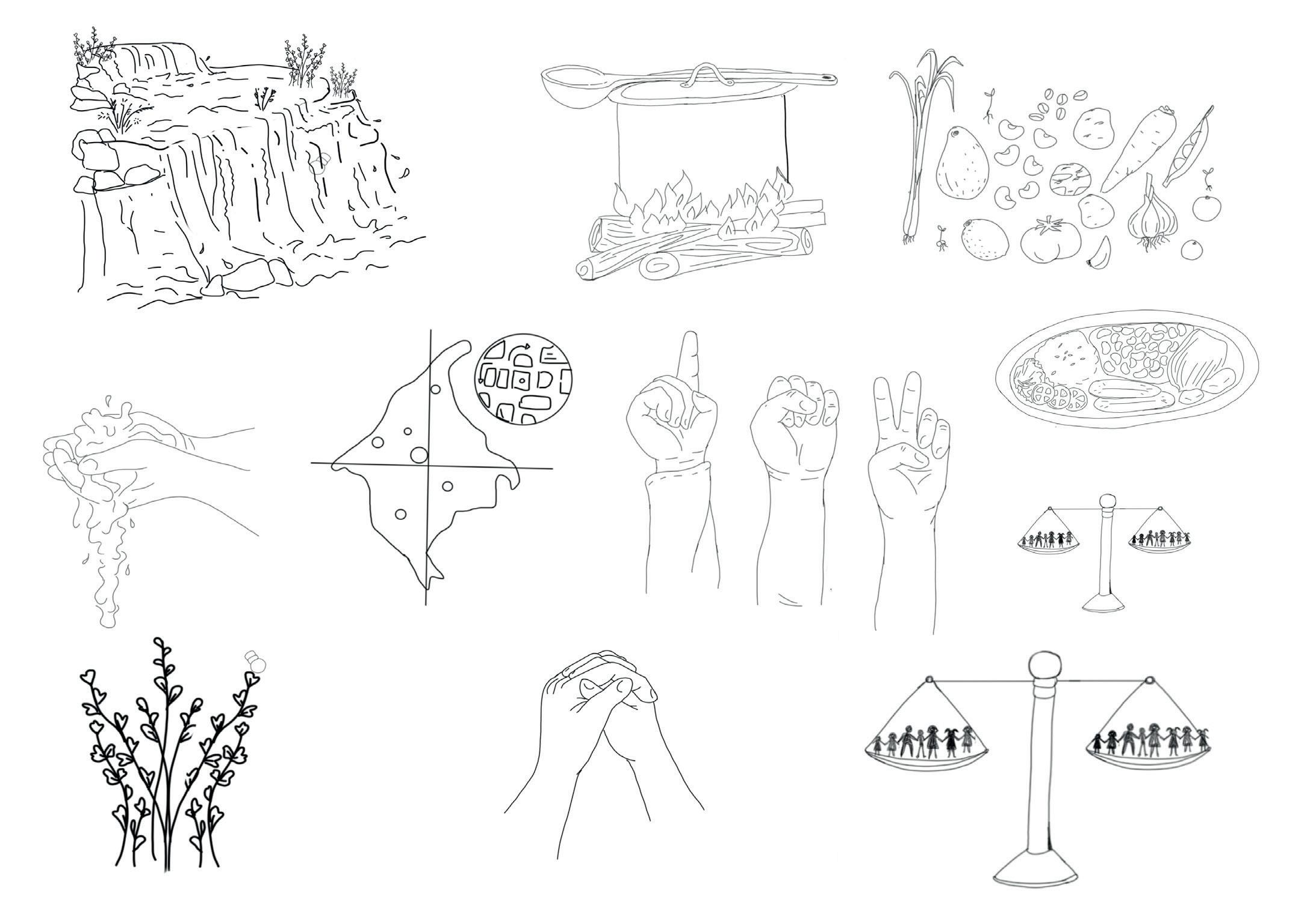 Ilustraciones digitales para el encuentro de Asociatividad Territorial, una apuesta para el desarrollo rural. La idea fue tener ilustraciones sobre alimentos nativos, agua, y participación ciudadana que luego serían utilizadas durante el evento en vivo para la realización de la sistematización ilustrada