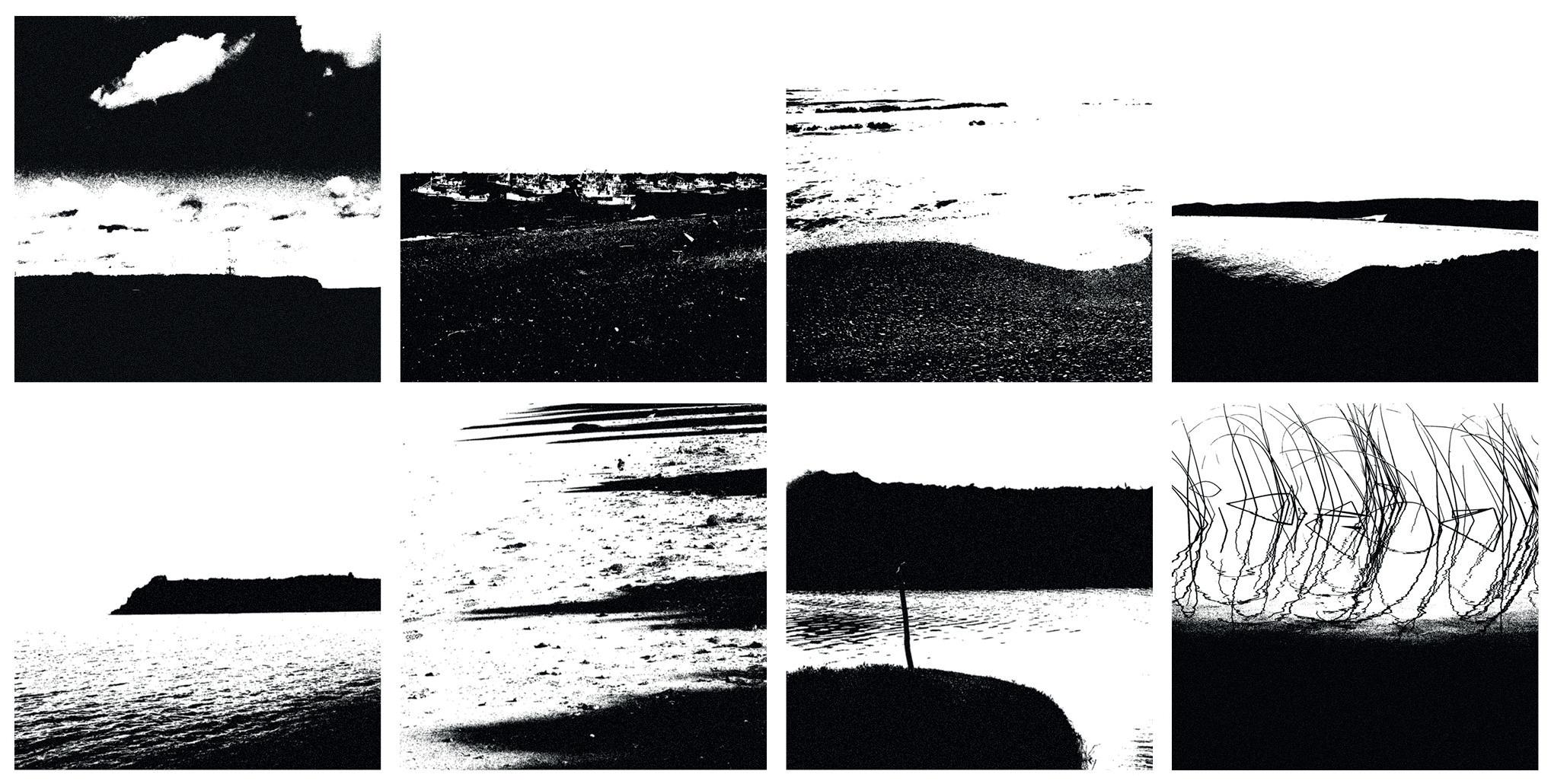 A partir de estas dos observaciones determiné que las fotografías para este proyecto serían de fragmentos de horizontes y orillas que no revelaran su geolocalización a simple vista, y que además no fuesen enclaves ya instalados en el imaginario turístico del territorio. Junto con ello deberían tener una composición visual tal que, al momento de ser editadas, pudieran ser imágenes en el límite entre lo figurativo y lo abstracto. (Figura 4)