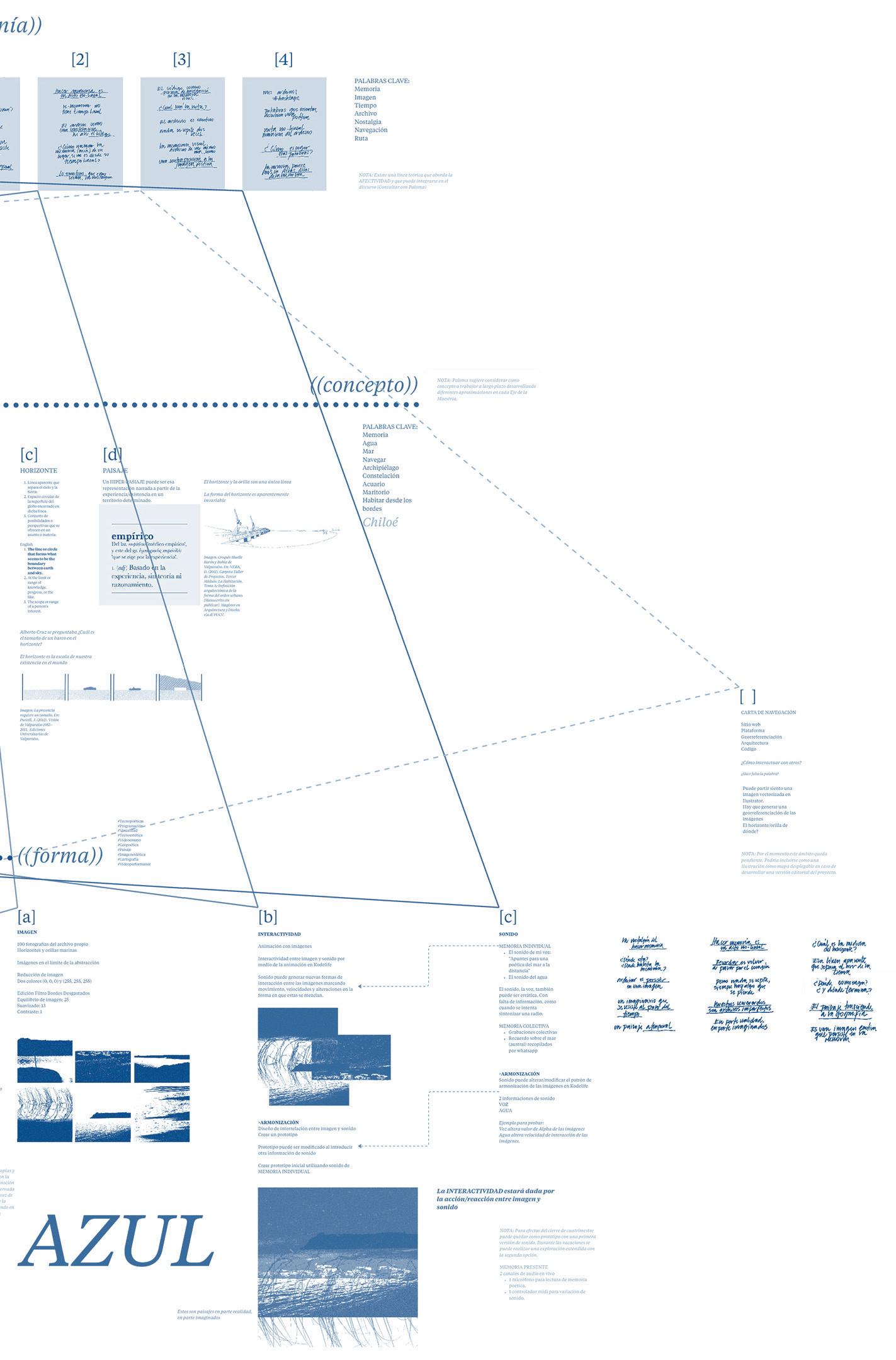 En este dispositivo, programado con lenguaje de código, la interactividad se genera a partir de la relación entre imagen y sonido, comandada por la variable tiempo, donde la amplitud del sonido afectará la velocidad con que percibimos la interacción entre las imágenes. Quizás en el futuro este proyecto pueda desarrollarse de manera colectiva, pero comenzaré incursionando en un ejercicio individual para la representación tecnopoética de mi propio Paisaje afectivo, compuesto por recuerdos e imágenes en los que persiste la presencia del mar en el Archipiélago de Chiloé, Patagonia chilena.