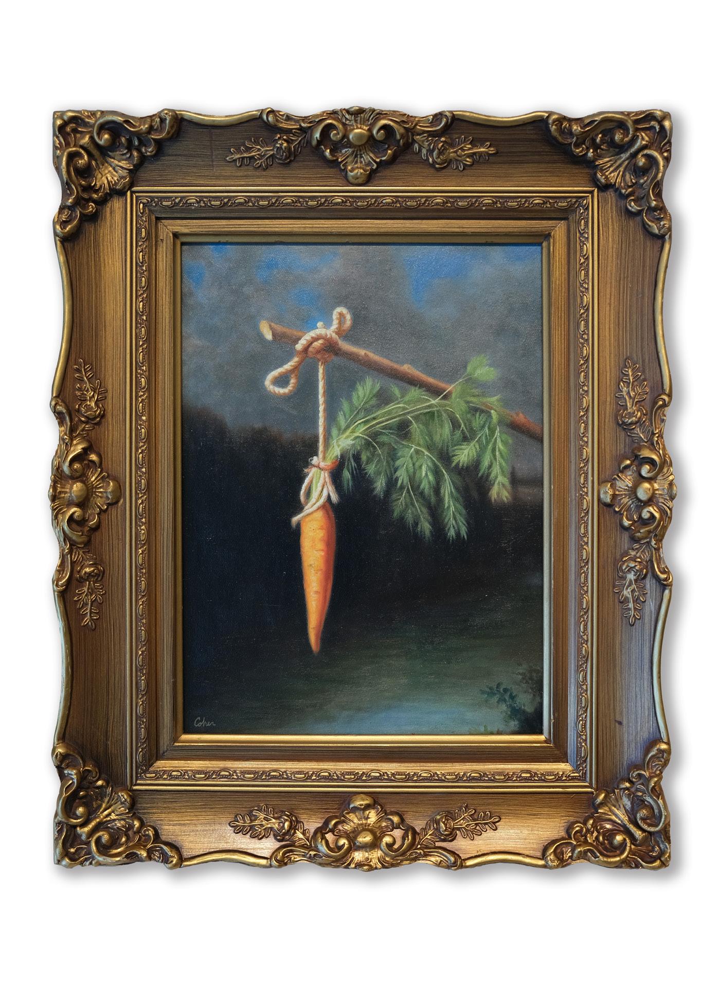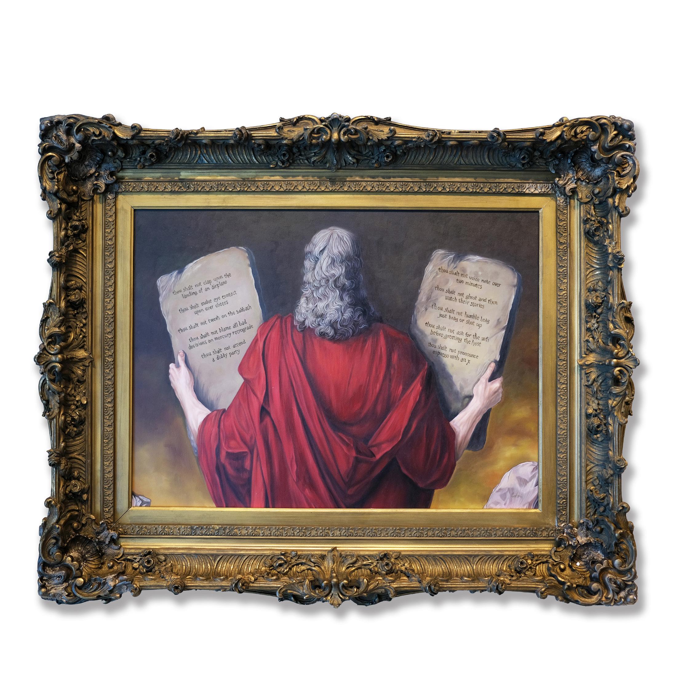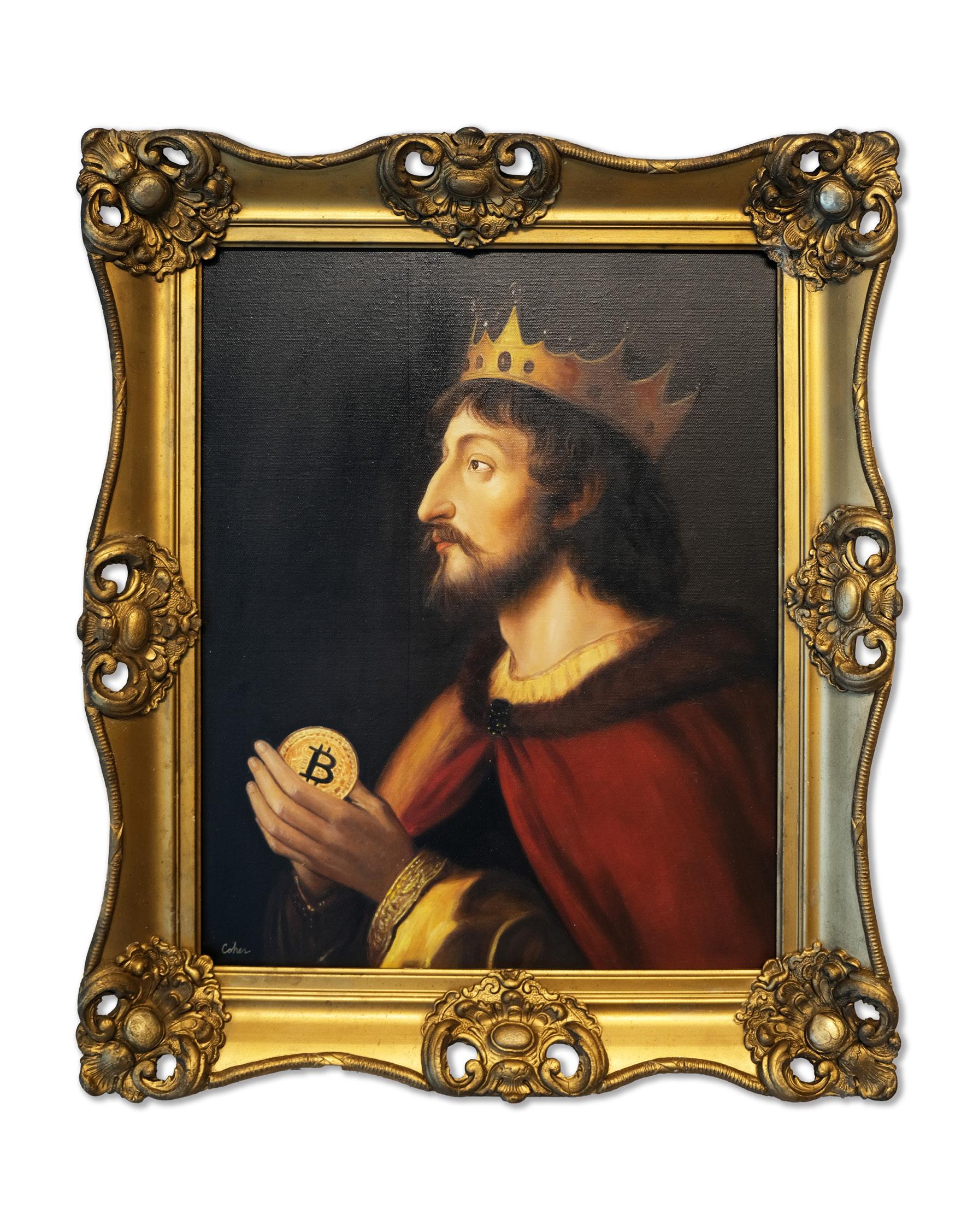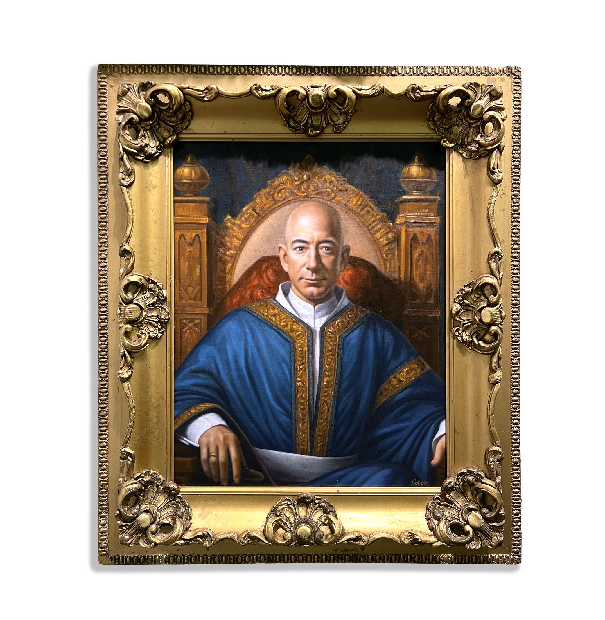 In this world, saints hold status symbols, kings invest in cryptocurrency, and prophets rewrite commandments for a digital generation. Using classical technique paired with conceptual play, Cohen reframes timeless archetypes such as the believer, the dreamer, the ruler, and the sinner. These figures are placed within the context of modern obsessions, inviting viewers to recognize themselves in each scene. Every painting becomes a reflection of today’s cultural theater, where luxury becomes a form of salvation and meaning is often sought in stimulation and status.