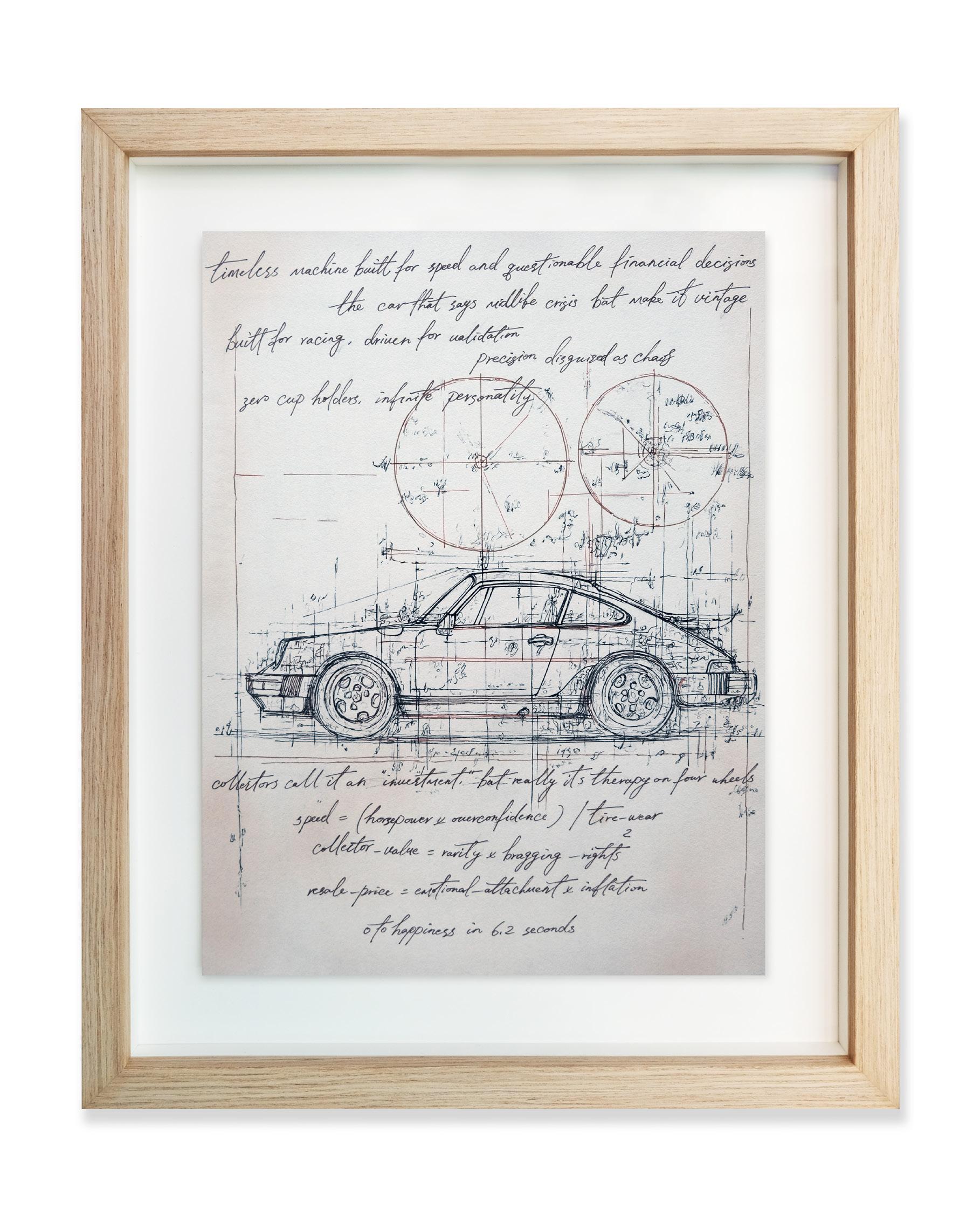 “Study of a Porsche” 14 x 17 inches Mixed media on paper