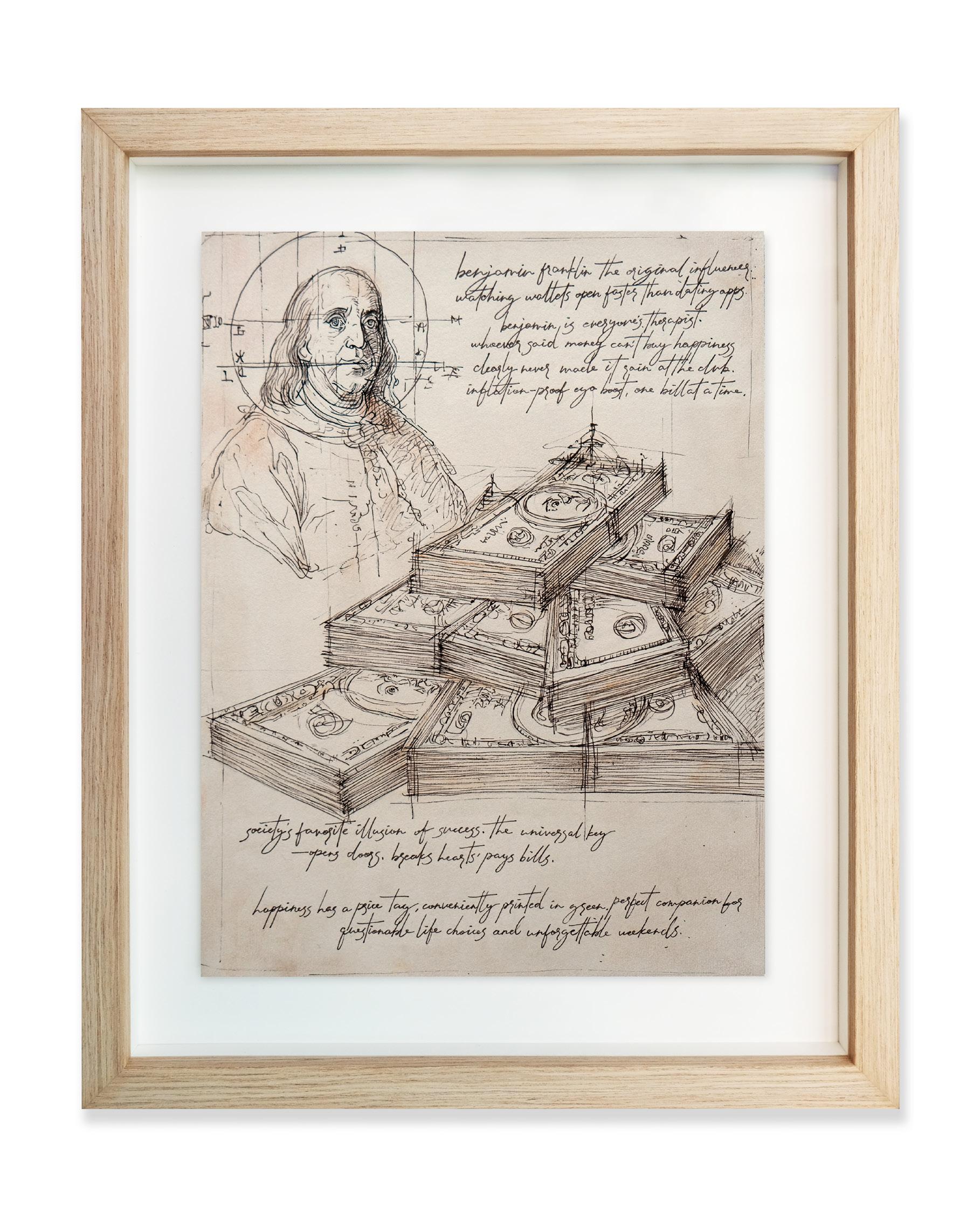 As an artist, my work delves into the intricate relationship between society’s values and desires, reflecting on how modern culture navigates concepts like fame, wealth, and addiction. My aim is to challenge and explore these themes with a playful, satirical lens that blurs the line between critique and admiration. I’m drawn to the paradoxes within our consumer-driven world, where luxury and vice often intertwine, and I aim to create works that inspire viewers to question their own perceptions and priorities.