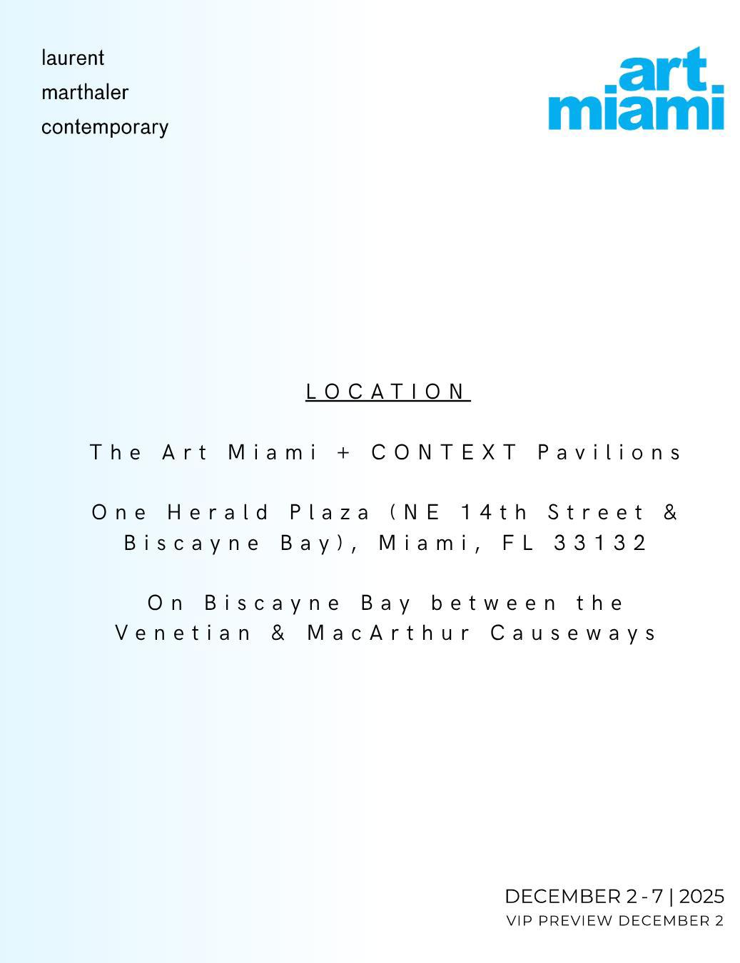 The MoCA Exhibit is open December 2 - 7 at Art Miami Fair with Laurent Marthaler.
