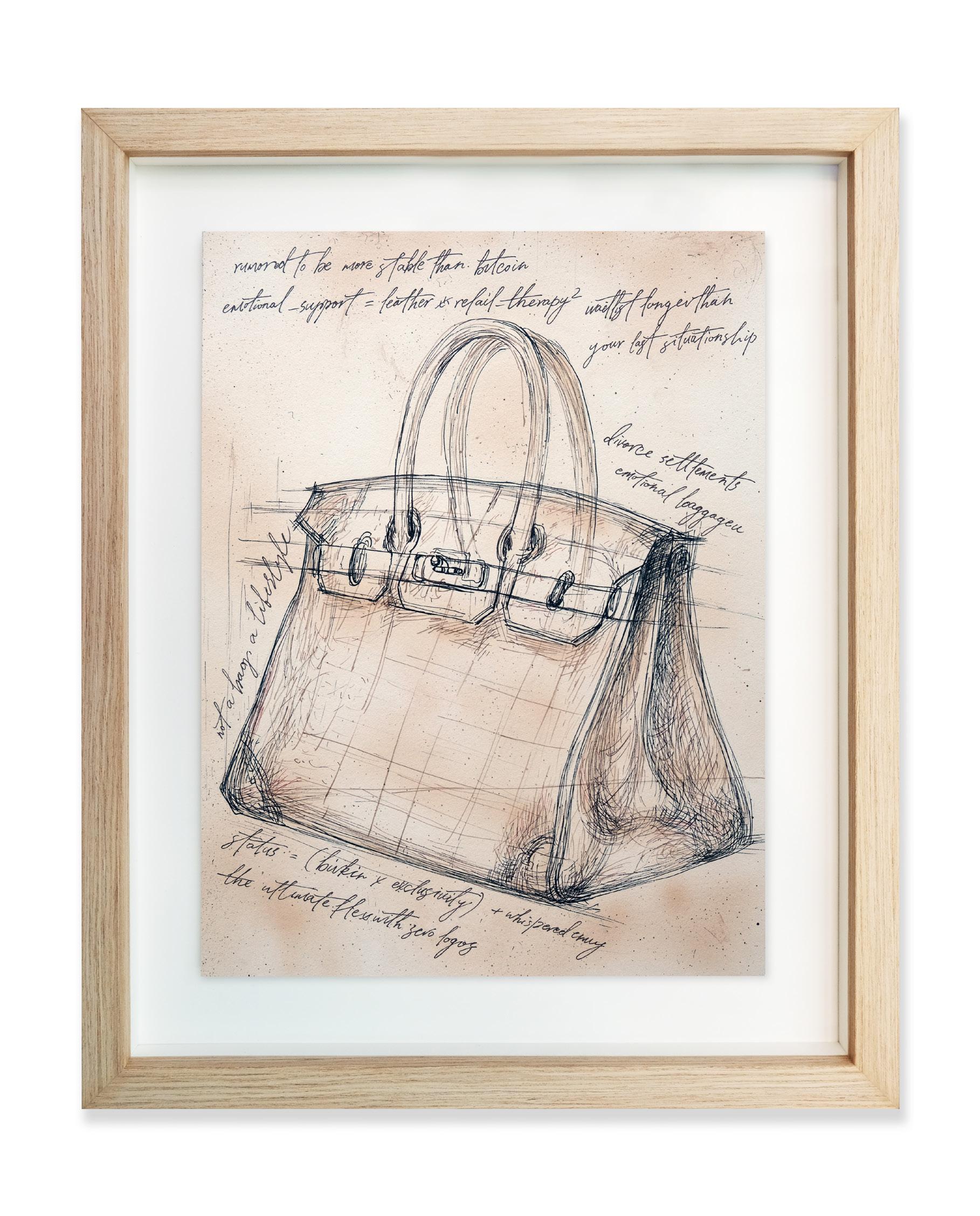 “Study of a Birkin” 14 x 17 inches Mixed media on paper