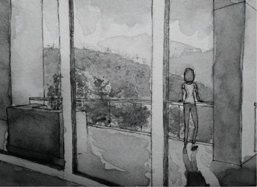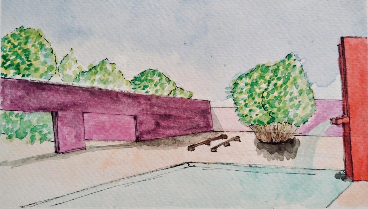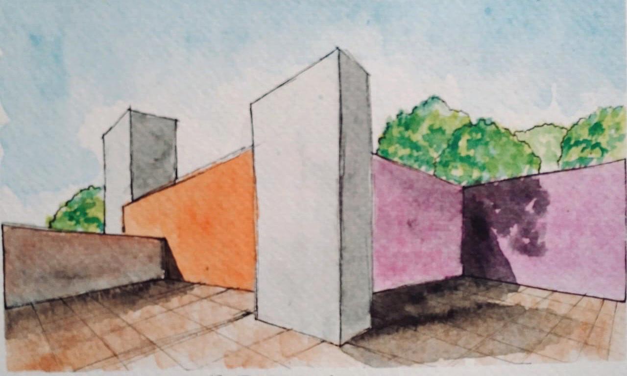 Cuadra San Cristóbal de Luis Barragán. Acuarela con rotulador punta fina